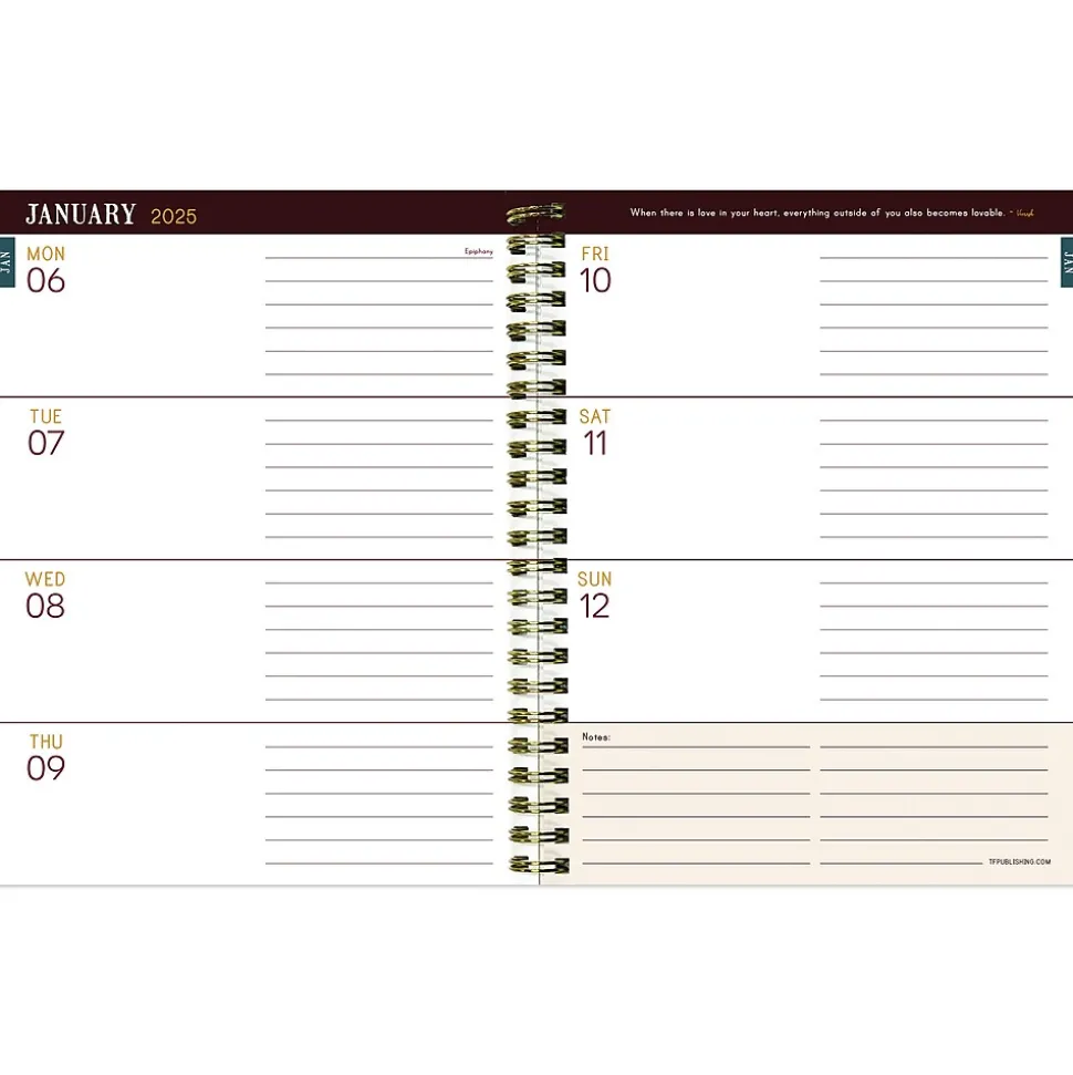 - Inside pages are designed with faux monthly tabs for easy access to weekly planning
