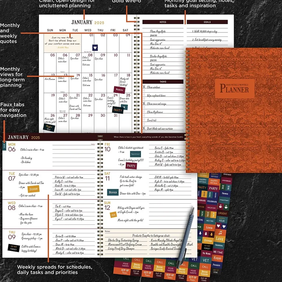 2025 TF Publishing Baroque Marigold 9″ x 11″ Weekly & Monthly Planner, Paperboard Cover, Multicolored (25-9718)