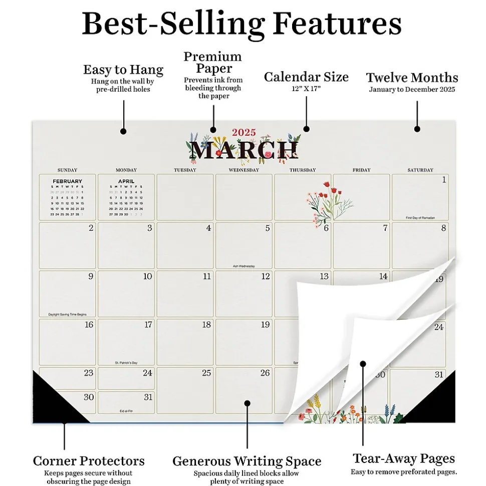 | Calendar End Month | Medium (largest length between 9″ – 17″) |