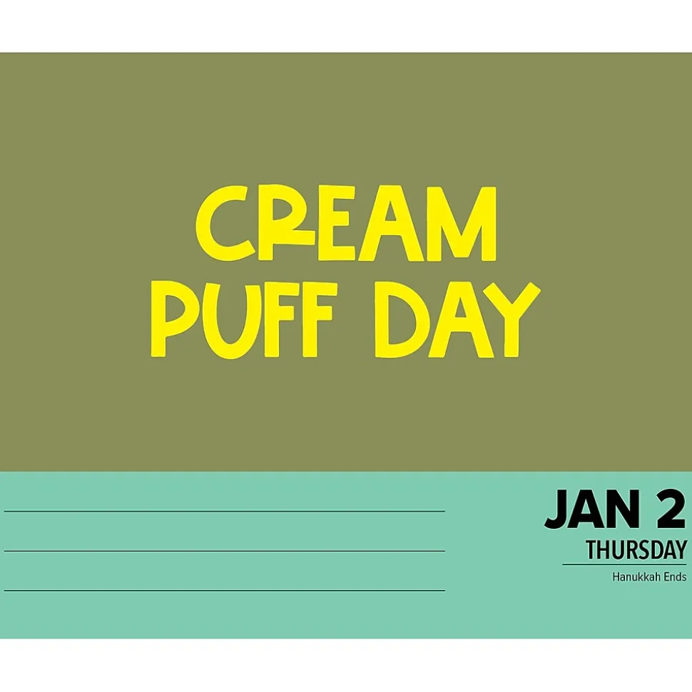 It’s easy to look forward to the day ahead when you know that every day is a holiday. This calendar reminds us that each day is a gift. From Hot Sauce Day to Doughnut Day and VCR Day to Squirrel Appreciation Day, it’s the most fun you can have enjoying the present. This Willow Creek Holidays for Days 2025 daily box calendar is a perfect addition to any home or workspace. The calendar’s small size allows for easy placement, and its content, filled with motivational quotes and funny material, is a great way to inject some fun and personality. Enjoy something new each day for the entire year, and make your desk the talk of the office.