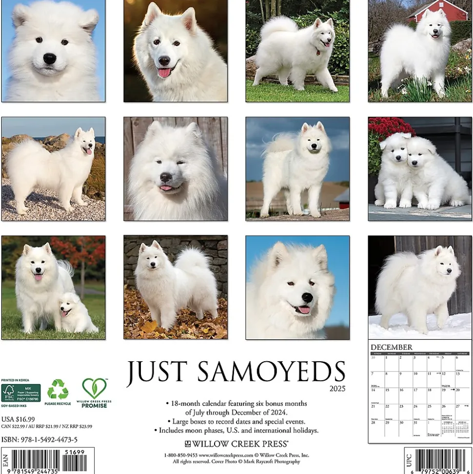 2025 Willow Creek Press Just Samoyeds 2025 Wall Calendar 12″ x 12″ (44735)