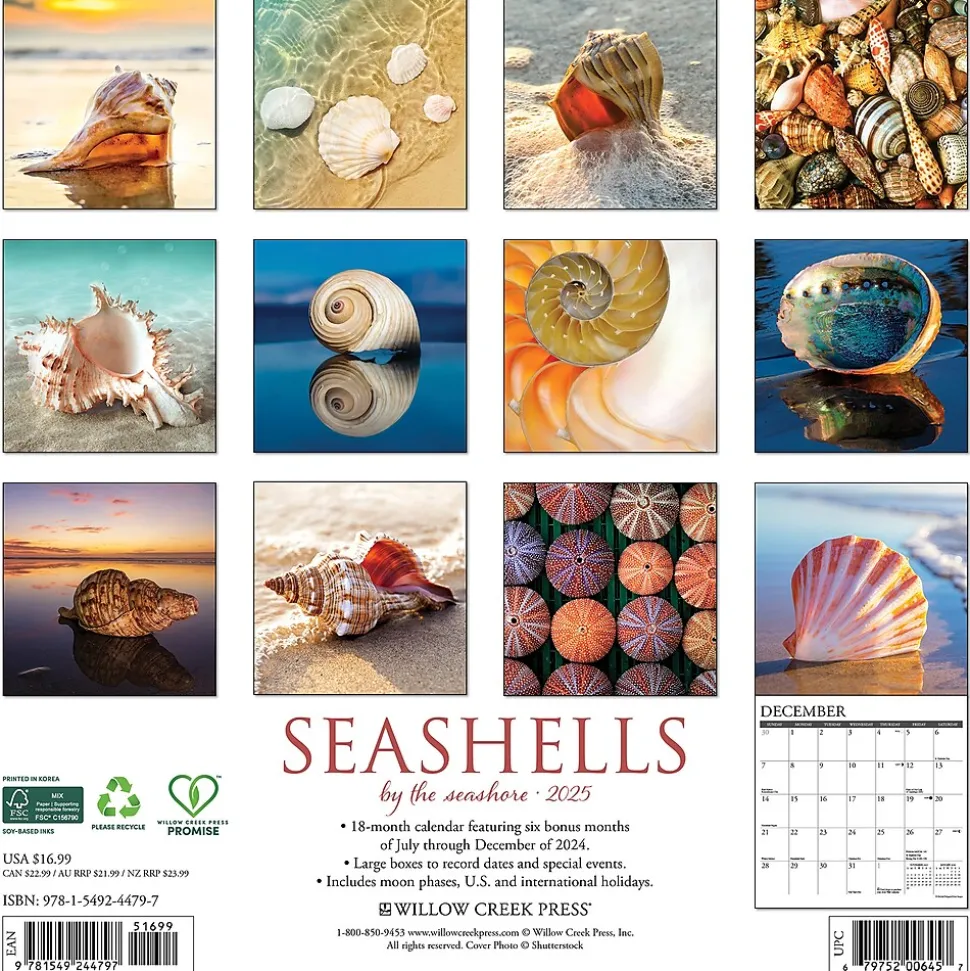 2025 Willow Creek Seashells 12″ x 12″ Monthly Wall Calendar (44797)