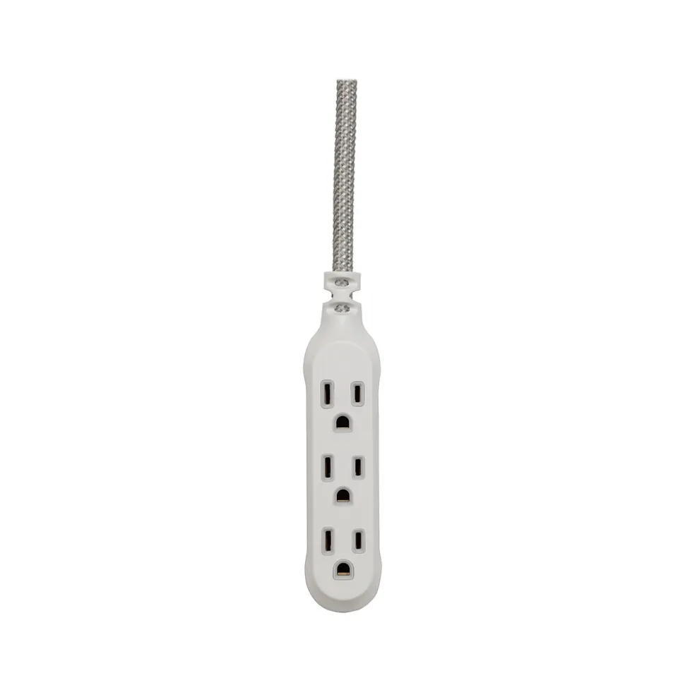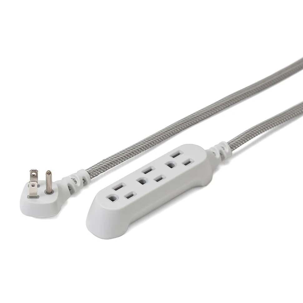 Plug in devices without leaving your desk using this extension cord. The 15′ length and right-angle plug access distant and hard-to-reach outlets, and the slim profile conserves space. This 360 Electrical Habitat Modern Collection 15′ braided extension cord has three AC outlets for multi-device connectivity.