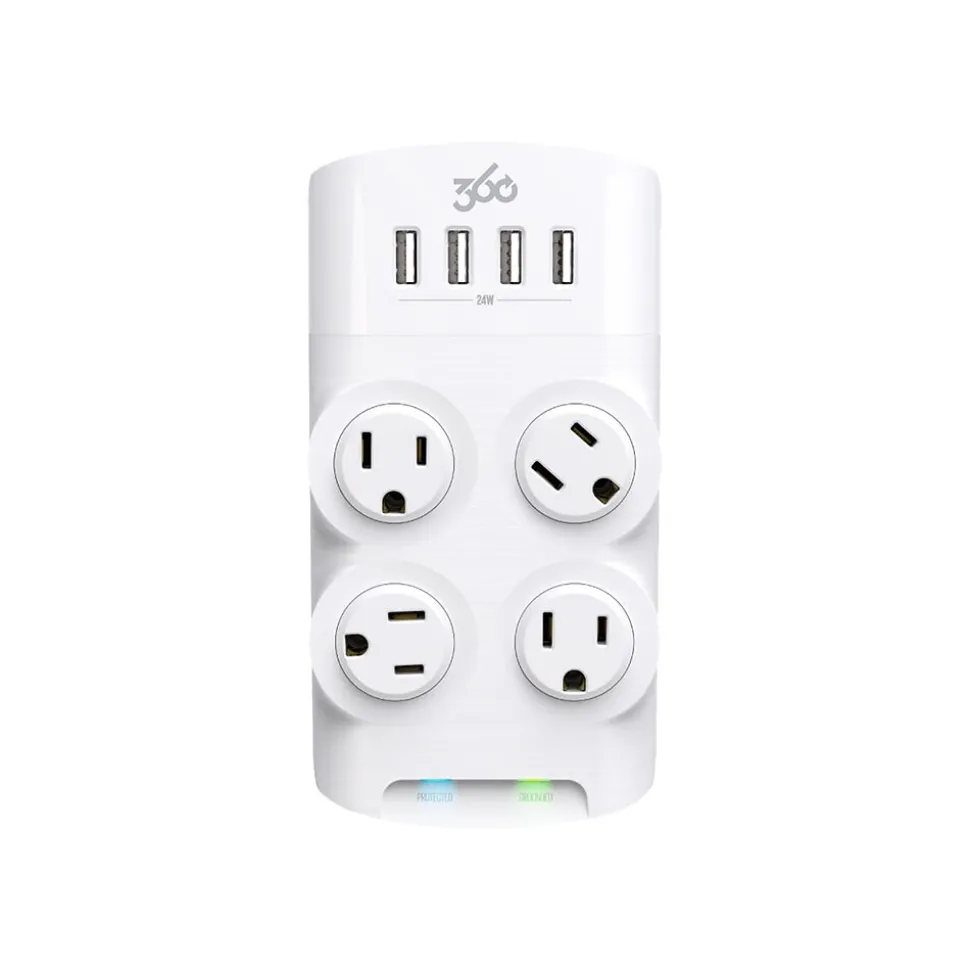- Four AC outlets rotate 360 degrees to fit large plugs