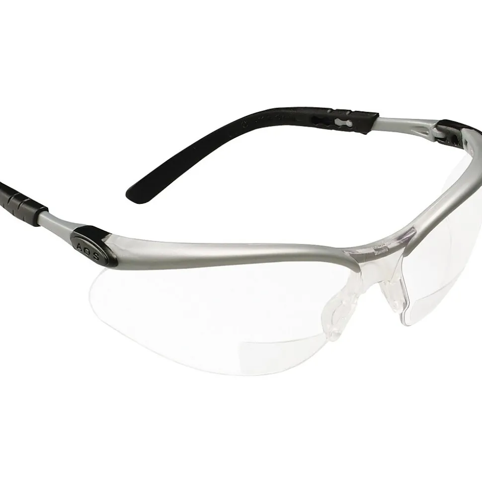 3M Silver & Black Frame Safety Glasses, Gray are made of durable polycarbonate lenses. They provide protection against scratches and UV radiation and have an adjustable frame design.
