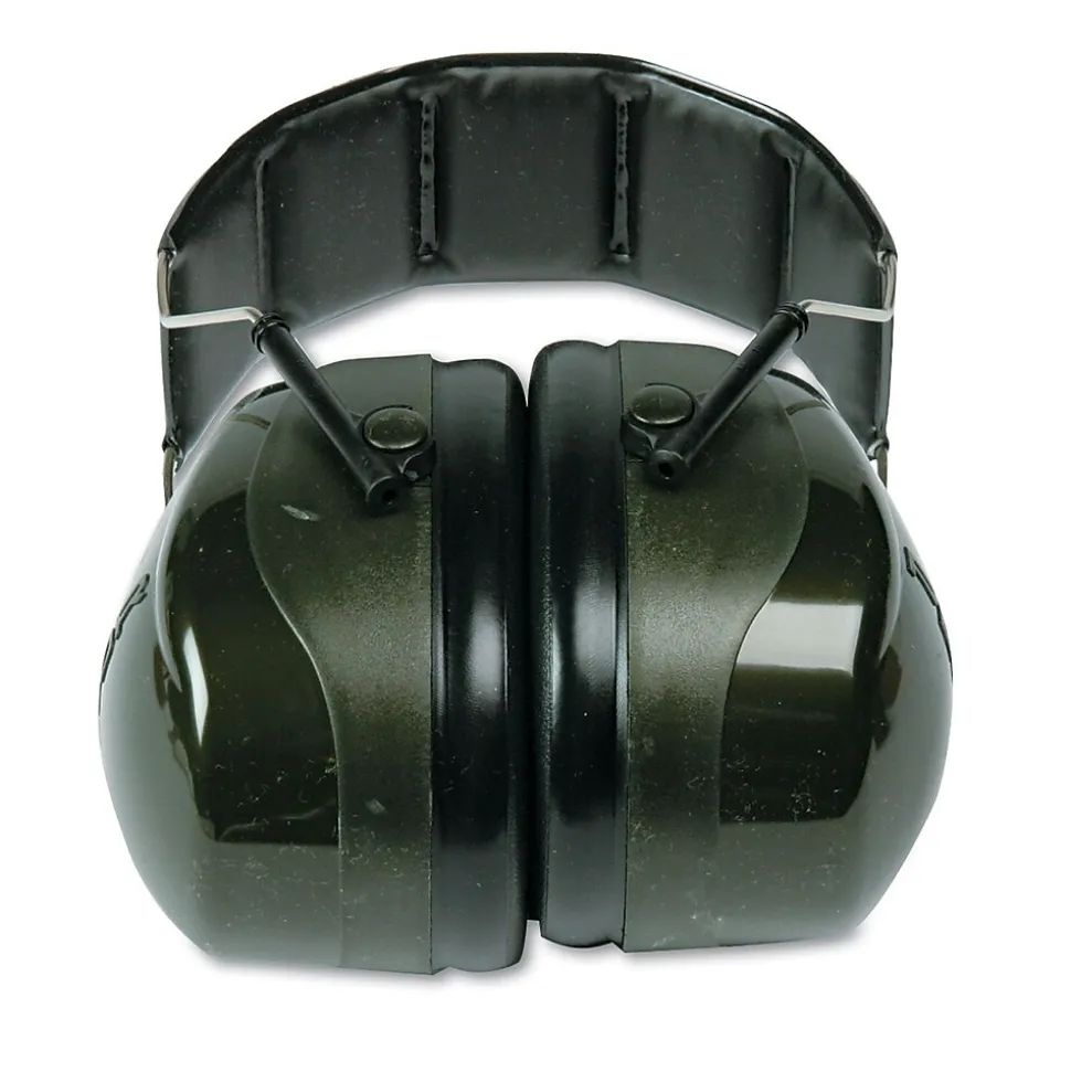 Peltor® Optime 101 over the head deluxe earmuff in dark green color has personal hearing protector with pivoting ear cups for optimum fit. Earmuff has 27 dB noise reduction rates and offers perfect attenuation at low/high frequencies.