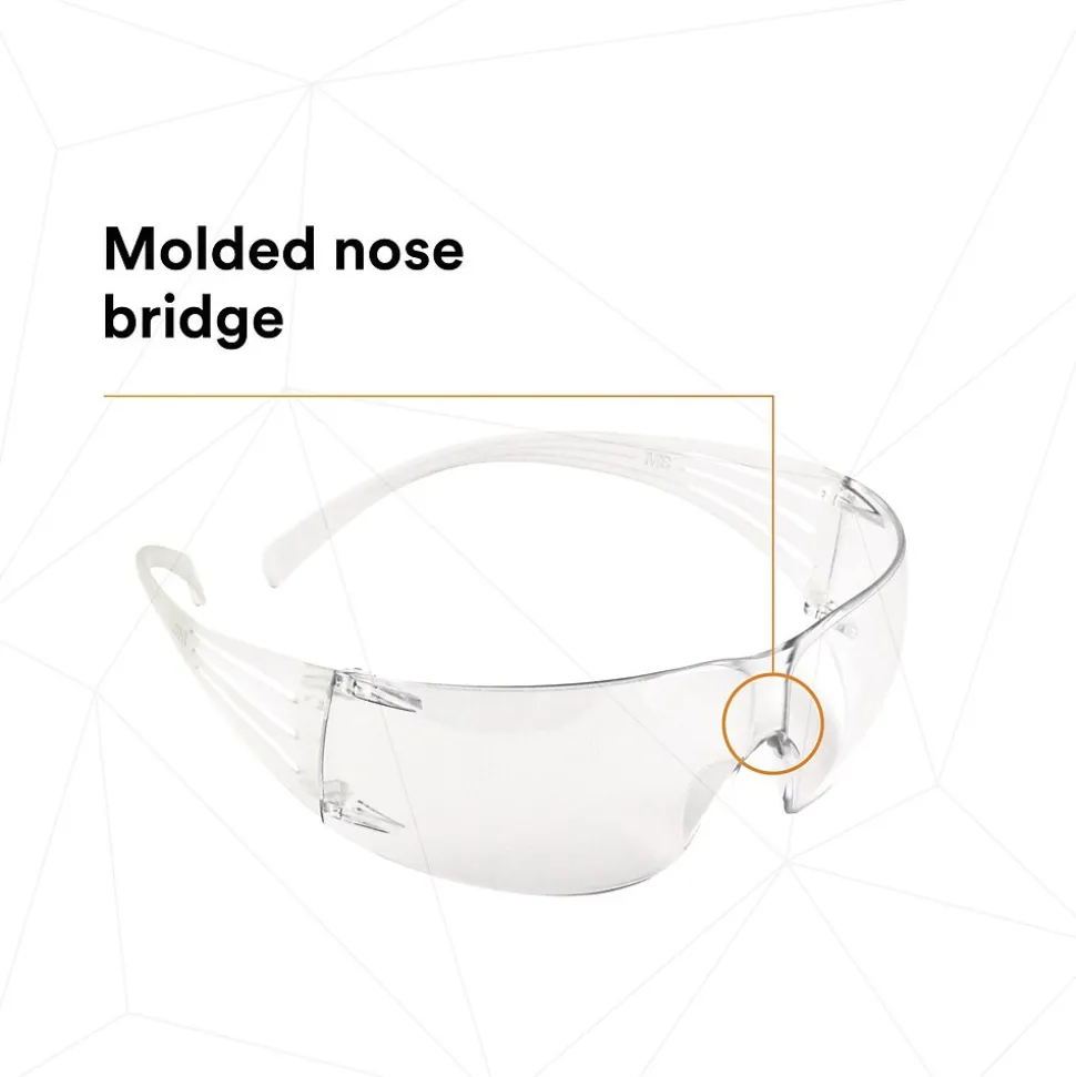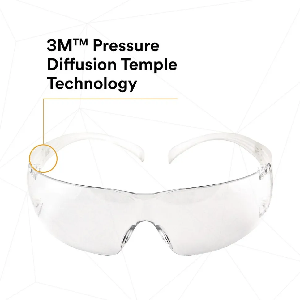 Features proprietary 3M™ Pressure Diffusion Temple Technology that helps diffuse pressure over the ear to enhance frame comfort while not compromising the security of fit across a diverse workforce.