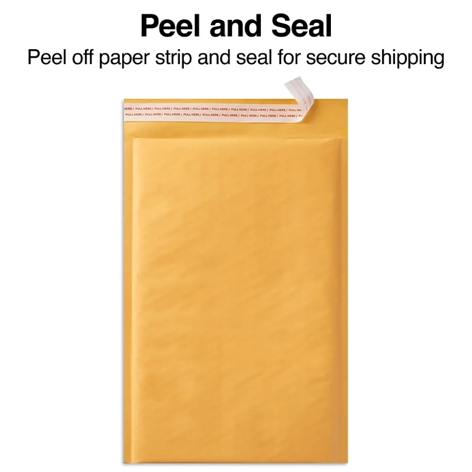 Safeguard phones, jewelry and other small items with these bubble mailers. The self-seal closure lets you quickly and securely package products. Natural kraft material lends a professional appearance and offers a lightweight shipping method, while the sturdy side seals help keep the contents safe. This carton of 25 Staples 4.63 x 6.75-inch kraft bubble mailers supports your business’ demands.