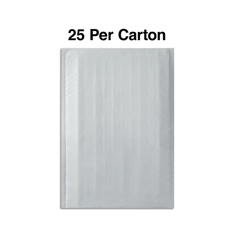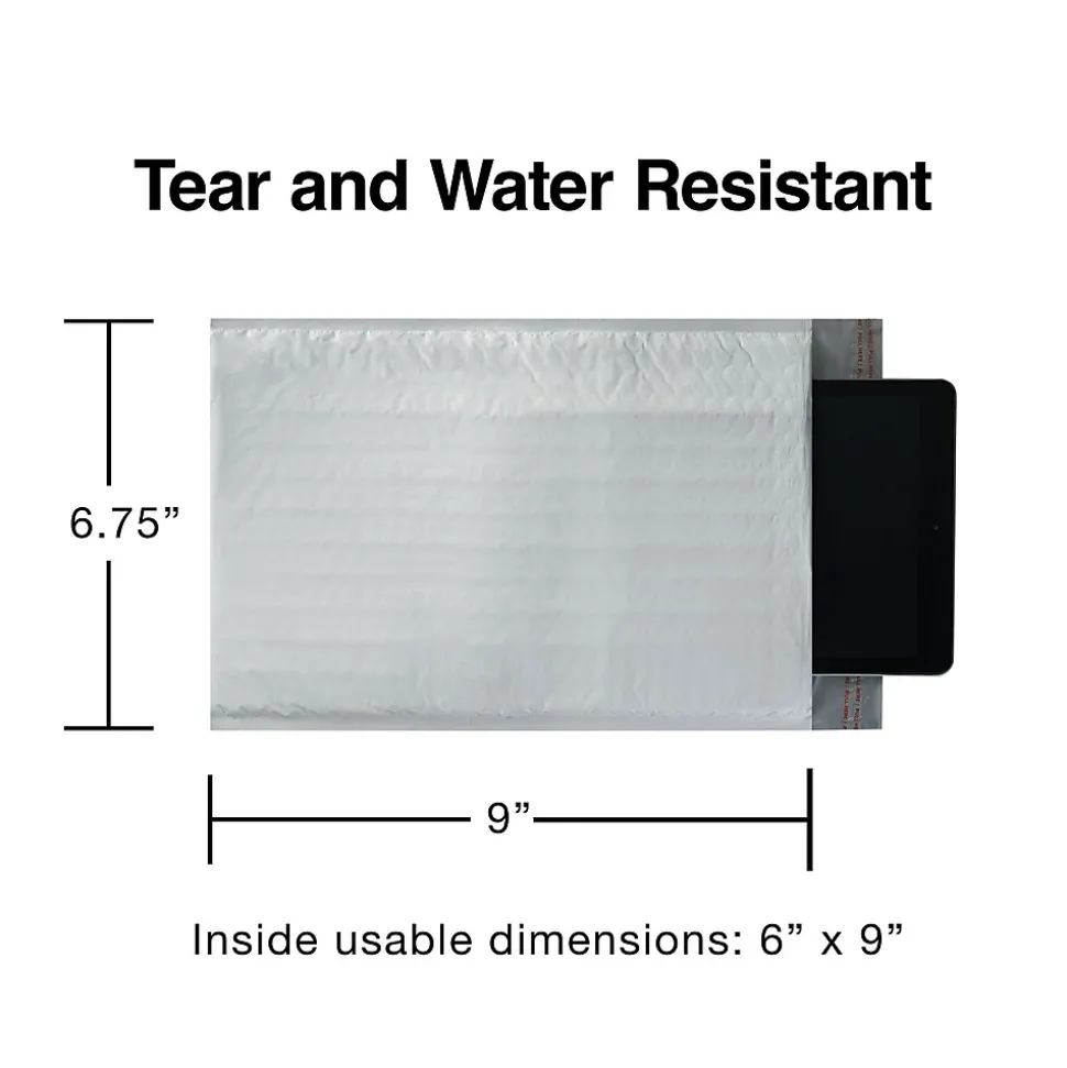 Add extra protection to customer orders with these bubble mailers. The crisp white exterior offers a professional touch, while the sturdy poly construction adds water resistance to protect contents stored inside. A lightweight design creates a cost-effective shipping solution. These Staples small white poly bubble mailers come equipped with peel-and-seal strips for quick setup and a firm hold.