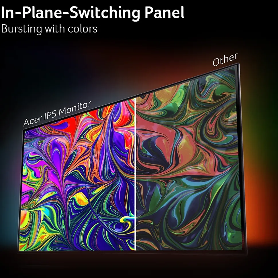 The Acer SA240Y G0 is a 23.8″ 1920 x 1080 display with 120Hz refresh rate. The elegantly thin design ensures that the monitor looks great and gives more space to its screen. The stylish base, with its pattern of concentric circles, looks great wherever it’s placed.