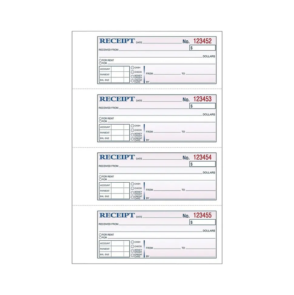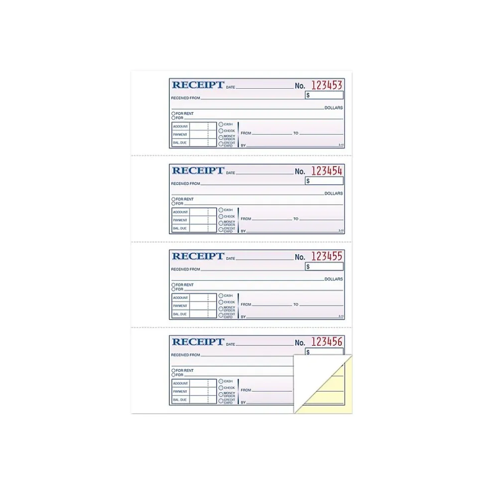 Create sales receipts anywhere with these portable receipt books. Each booklet in this pack contains 50 pages in duplicate, providing a white original and a yellow, carbon-free customer copy. Every receipt in these books is numbered with a unique, six-digit code to keep record keeping easy. These carbonless Adams receipt books are ideal for small businesses, fundraisers, festival events, and anywhere else you need to write receipts on the spot.
