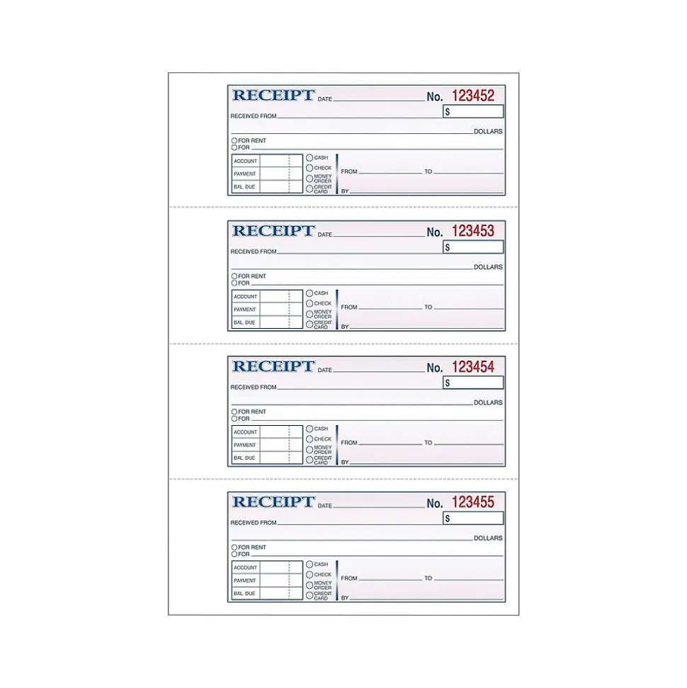 - Money receipt book is consecutively numbered for easy organization