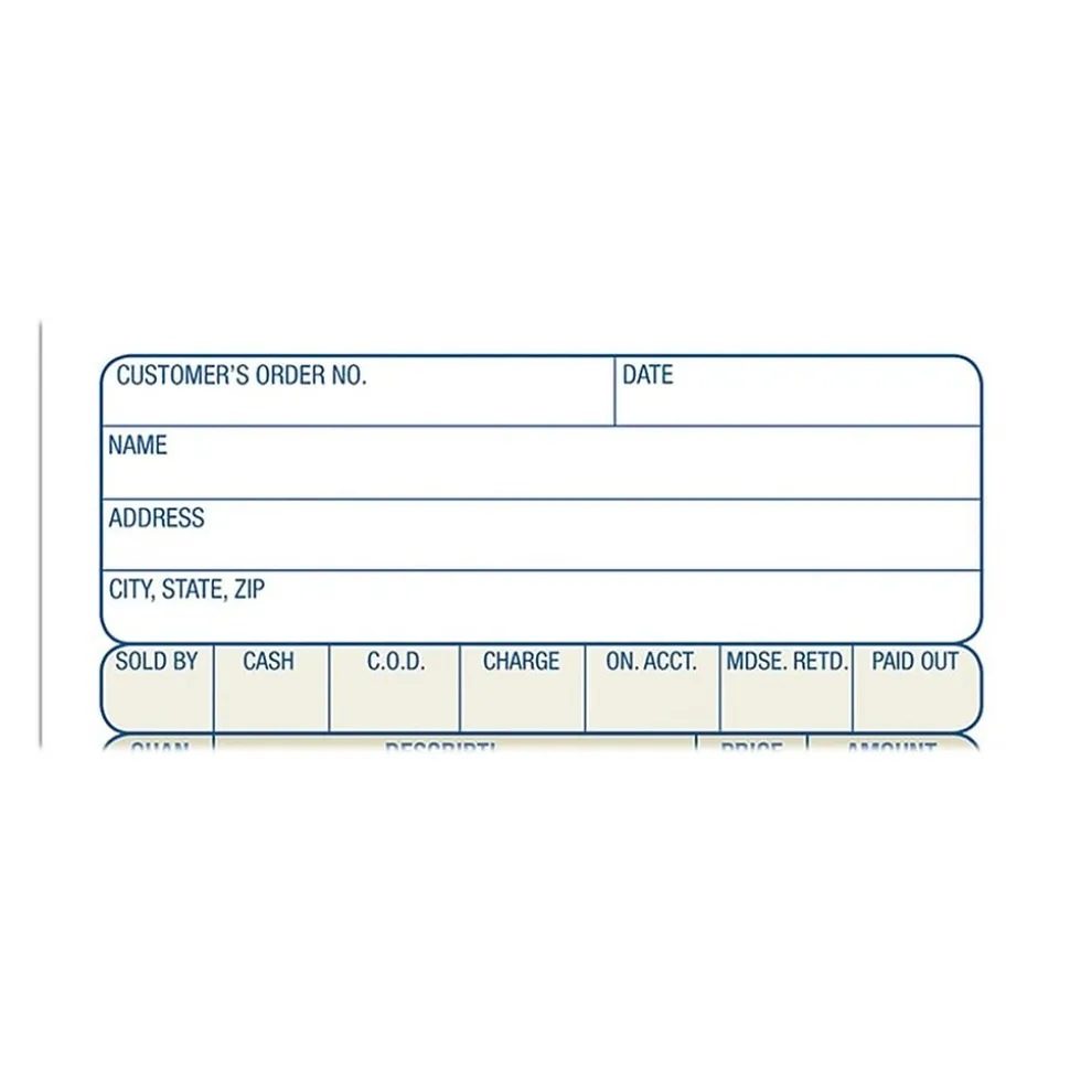 - 3-part order sheets with white primary page, canary duplicate page, and pink triplicate page