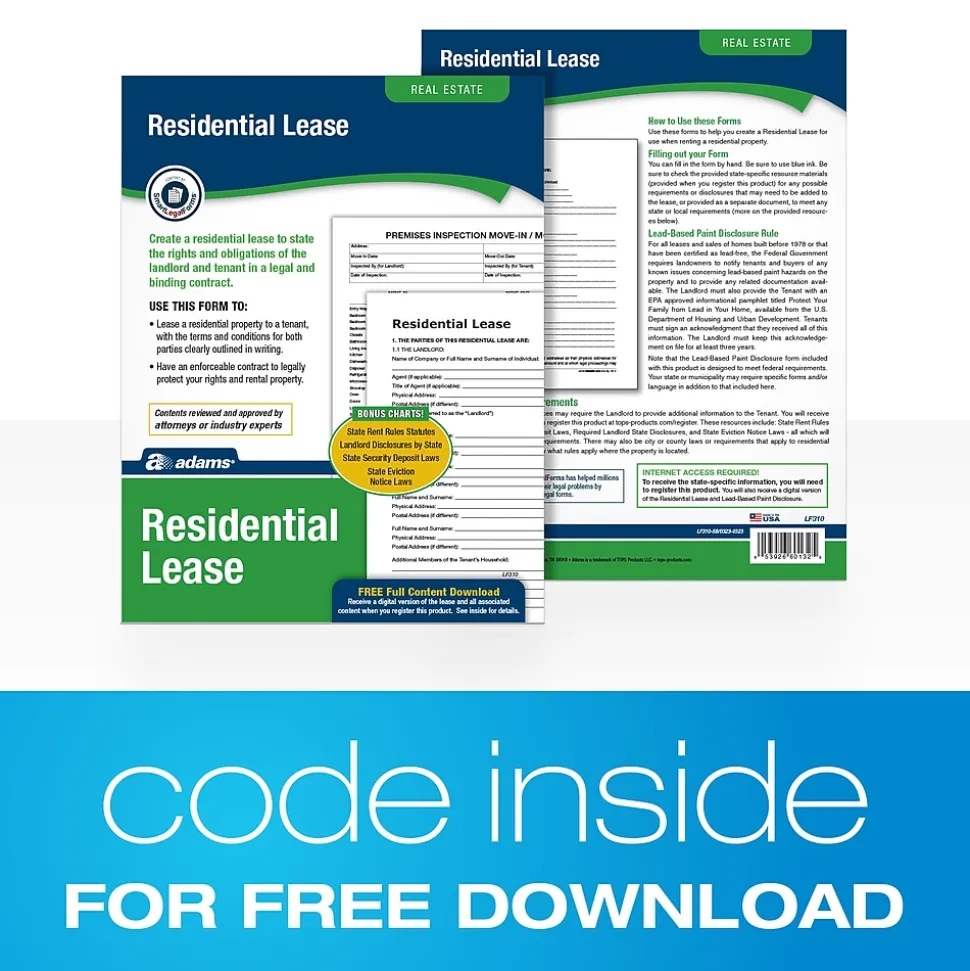 Adams Residential lease features customizable agreement that lays out rental terms and conditions, state required landlord disclosures. Lease includes disclosure of information on lead-based paint/lead-based paint hazards. 2014-2015