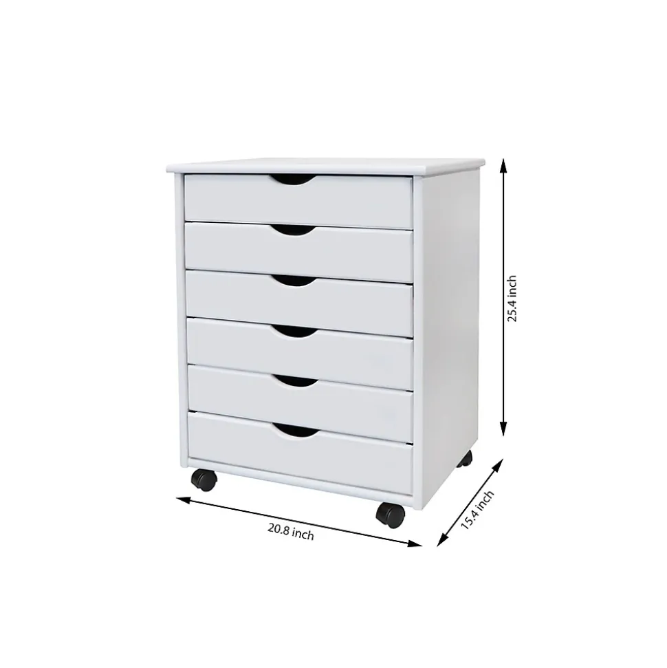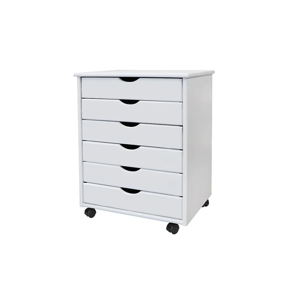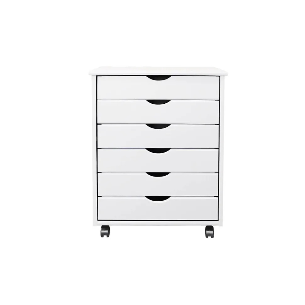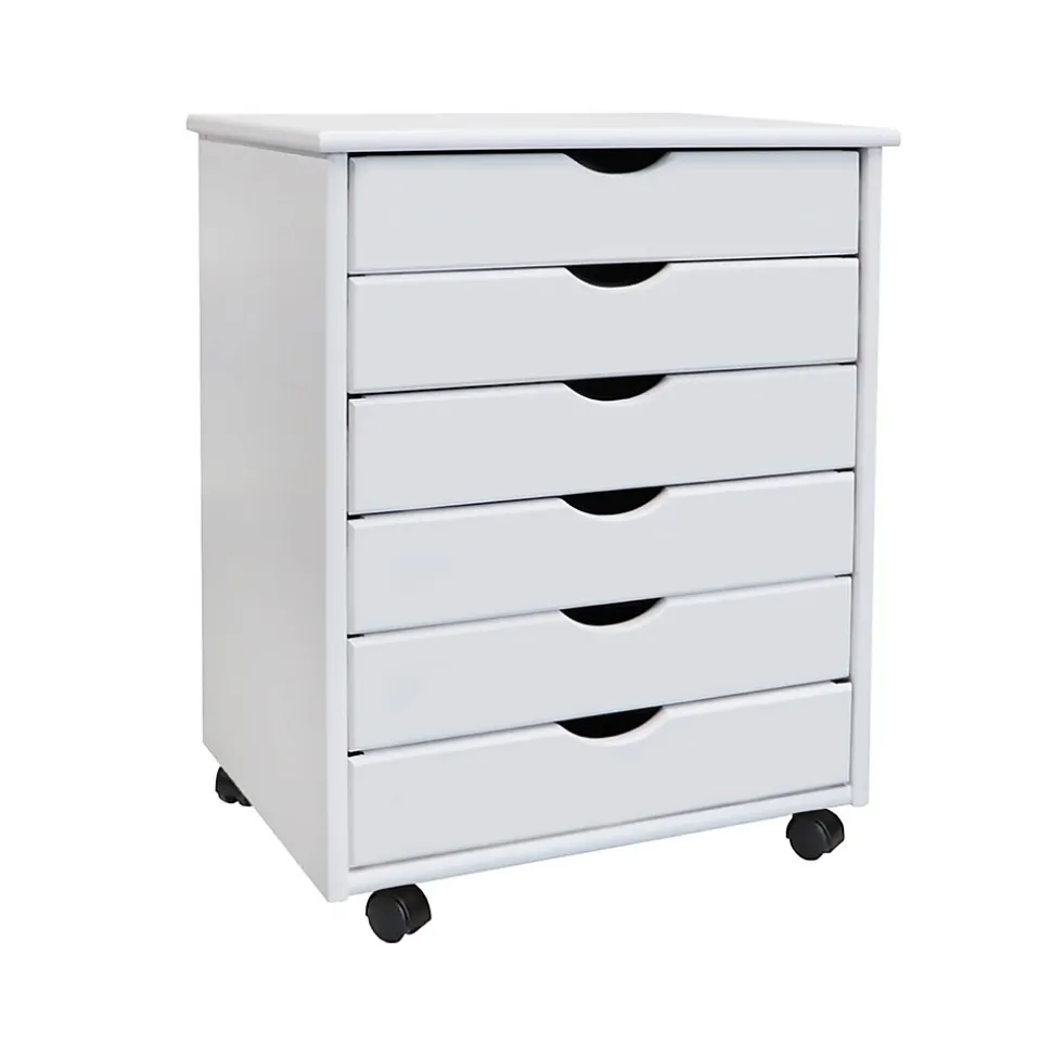 This six-drawer roll cart on wheels features deep drawers to hold reams of paper. Perfect for scrapbooking, crafts, kitchens, garages, offices, or end tables.