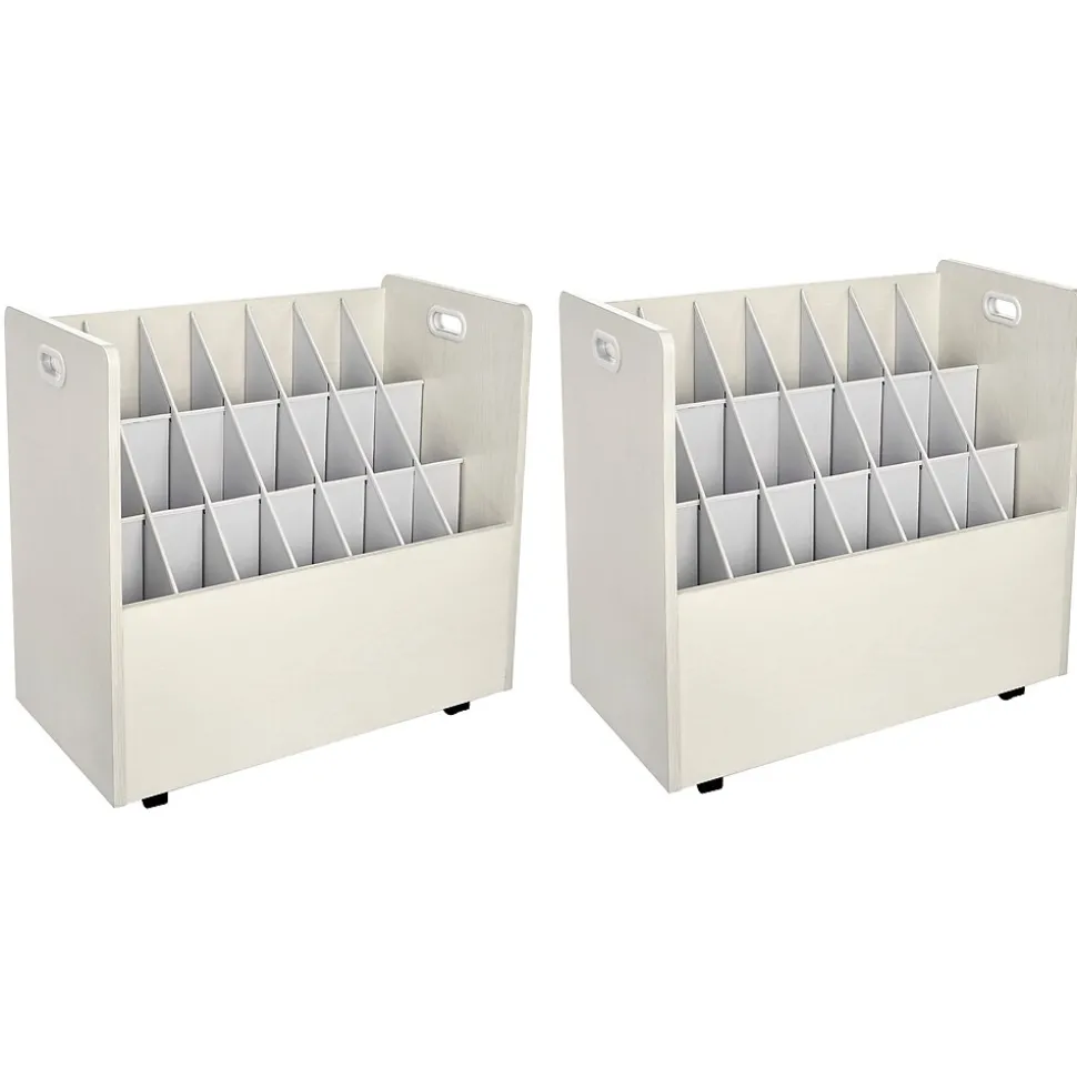 - 21-Slot White Mobile Rolling Wood Blueprint Roll File Large Document Organizer 2 Pack