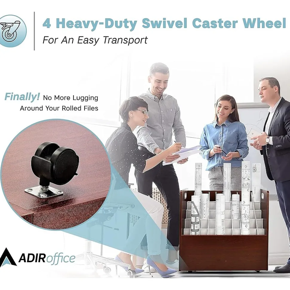 - AdirOffice Mobile Wood Blueprint Roll File is offered in tube slot option with 50 compartments to suit everyone’s storage needs