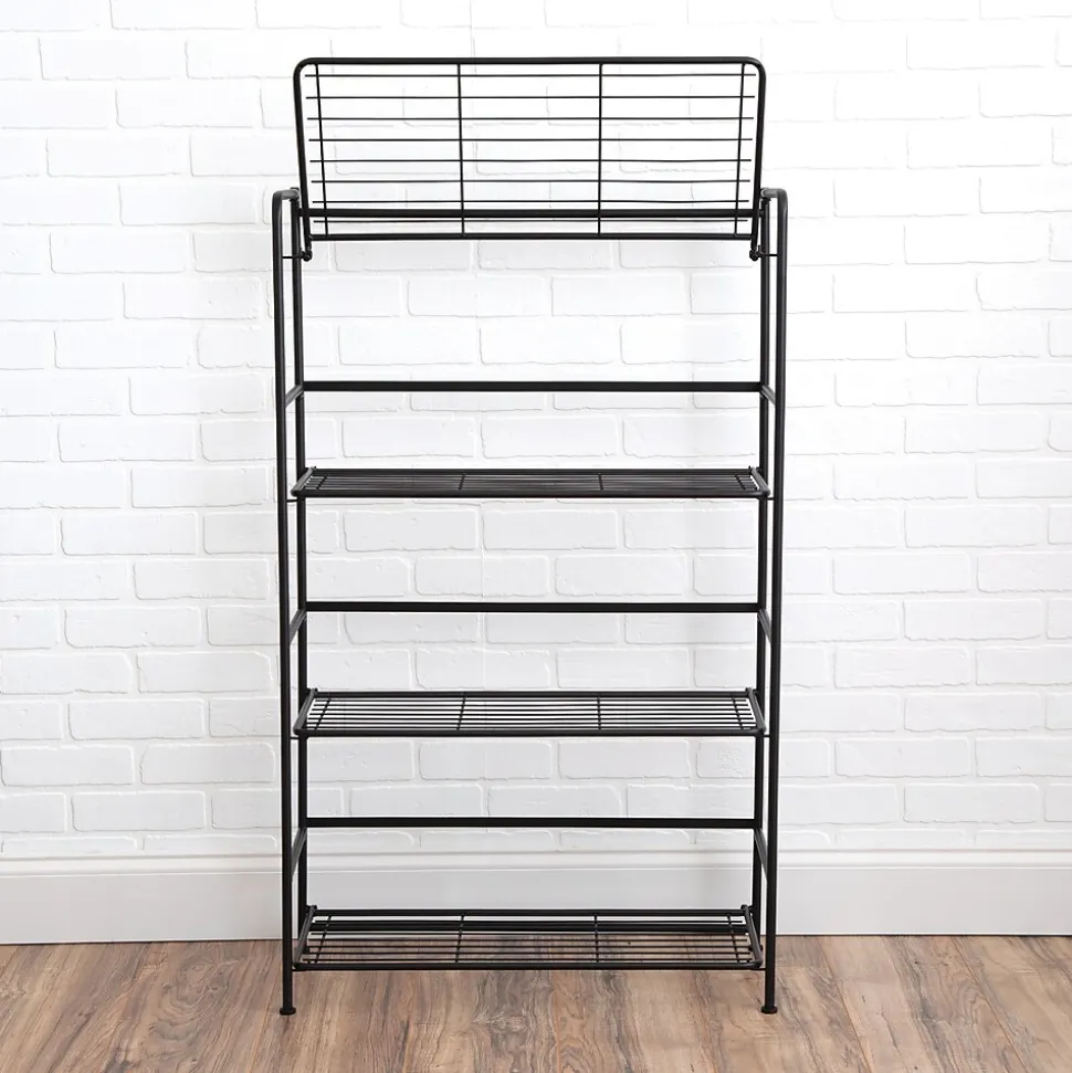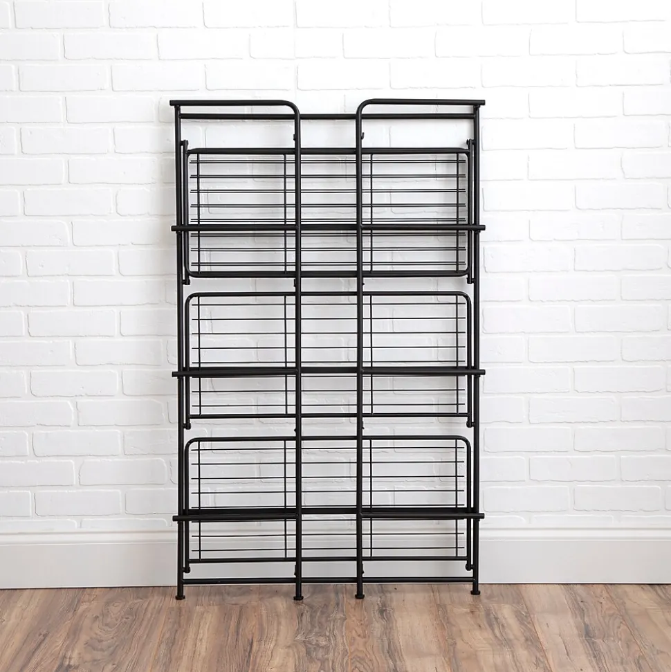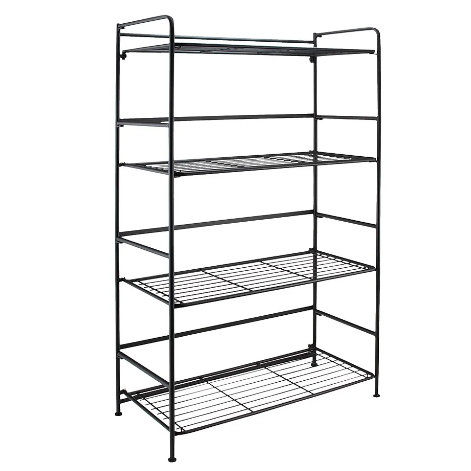 Organize items on this lightweight shelving unit. The one-piece construction sets up in minutes, providing four wide shelves to stow supplies, and the adjustable feet provide a level base. This Advantus FlipShelf folding shelf unit folds flat, so you can easily move it from room to room.