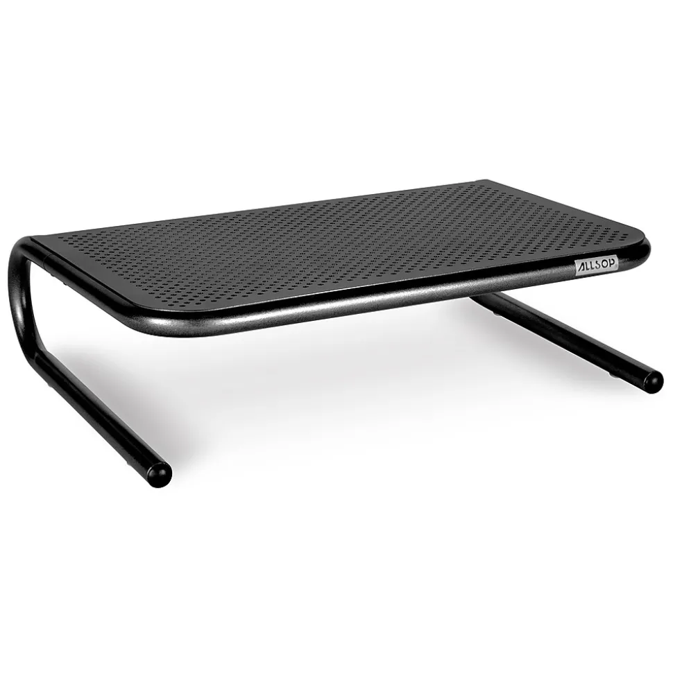 Improve productivity with this desktop display stand. Its sturdy metal frame can support up to 40 pounds, and the surface perforations permit optimal air flow. The open design of this Allsop raised stand lets you store a keyboard or extra papers underneath and out of sight.