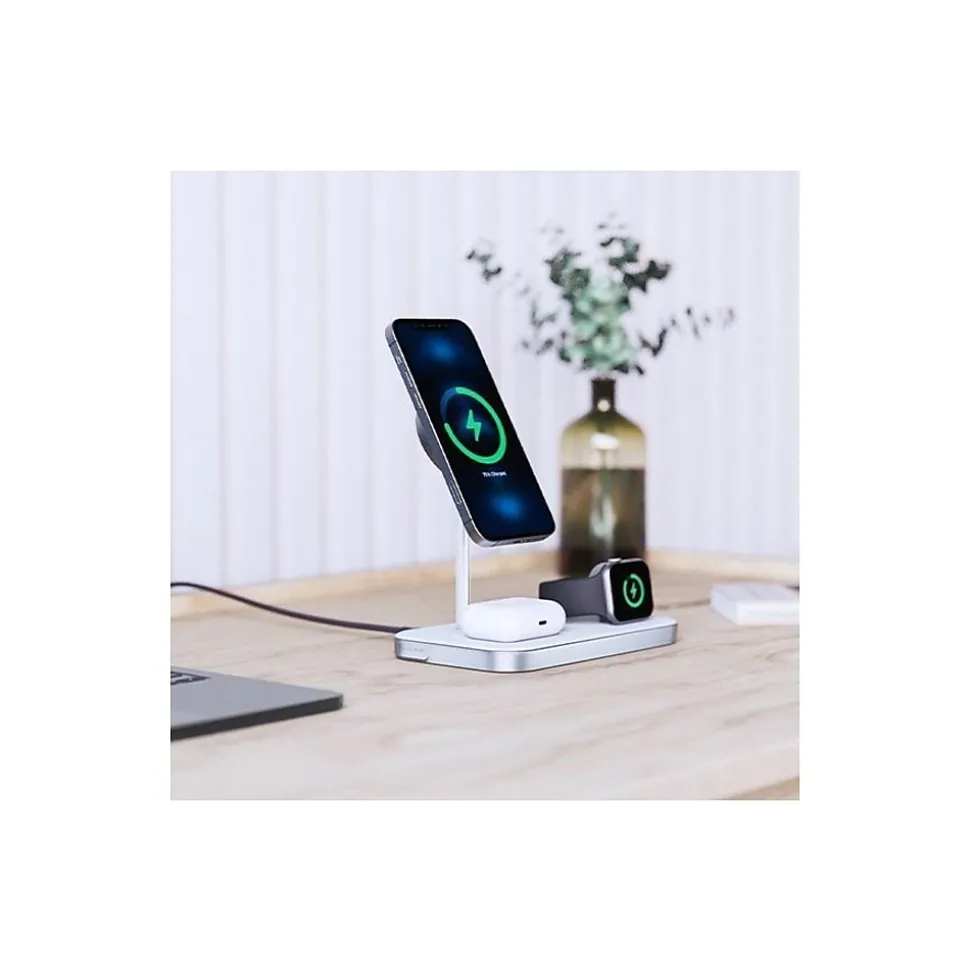 The MagSpeed 3-in-1 outputs up to 15W power and peace of mind, exceeding all charger safety and performance requirements. The MagSpeed is perfect for set-and-forget power bursts on idle devices, and for using your iPhone 12 while it charges.
