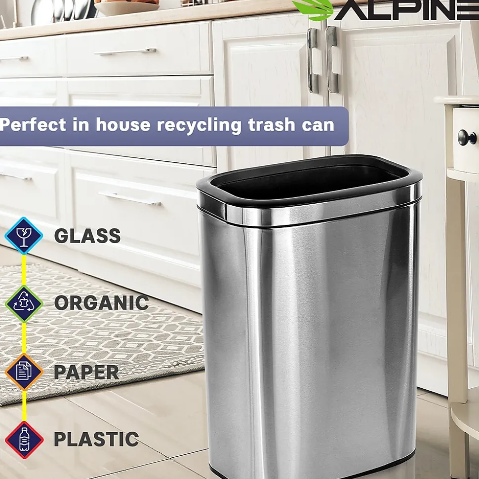 Alpine Industries Commercial Indoor Dual-Stream Recycling Station, 10.5 Gallon, Stainless Steel (ALP470-40L-R-T)