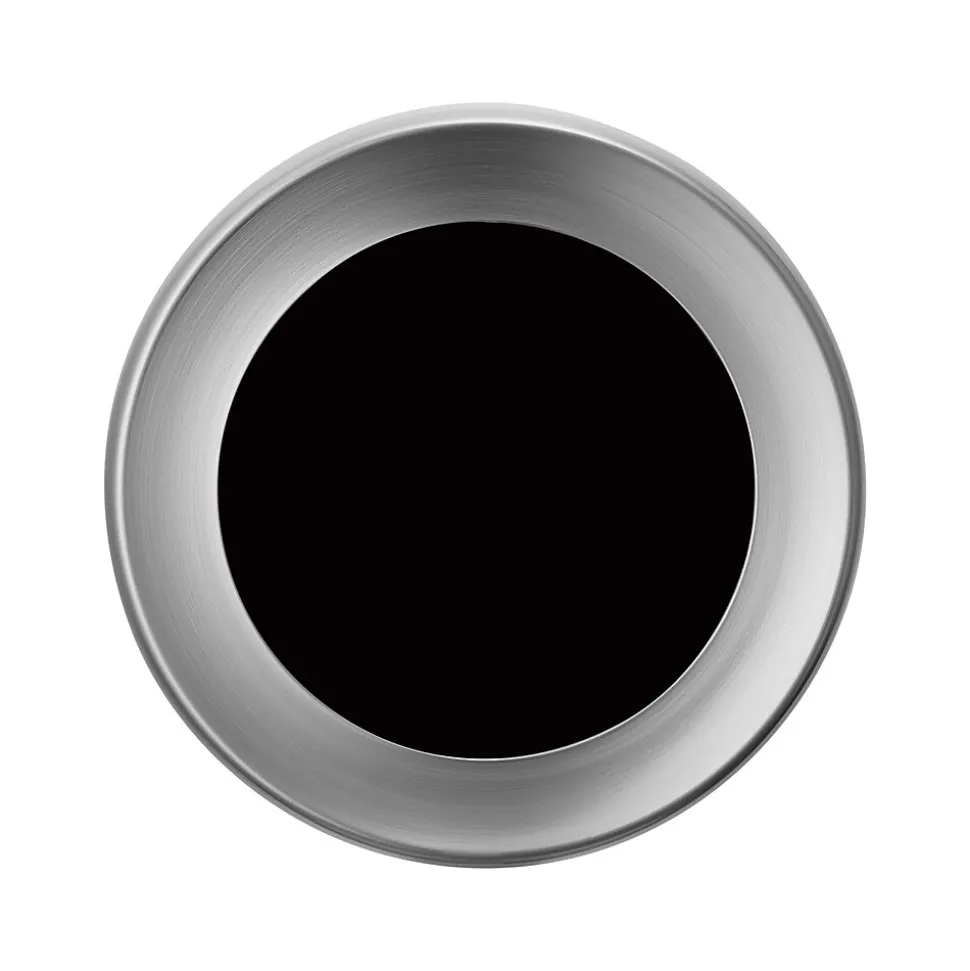 - Featuring a brushed silver finish with black handles – along with black rings on both the top and bottom – this sleek, stainless steel garbage can adds a clean, modern look that will easily fit into any interior space