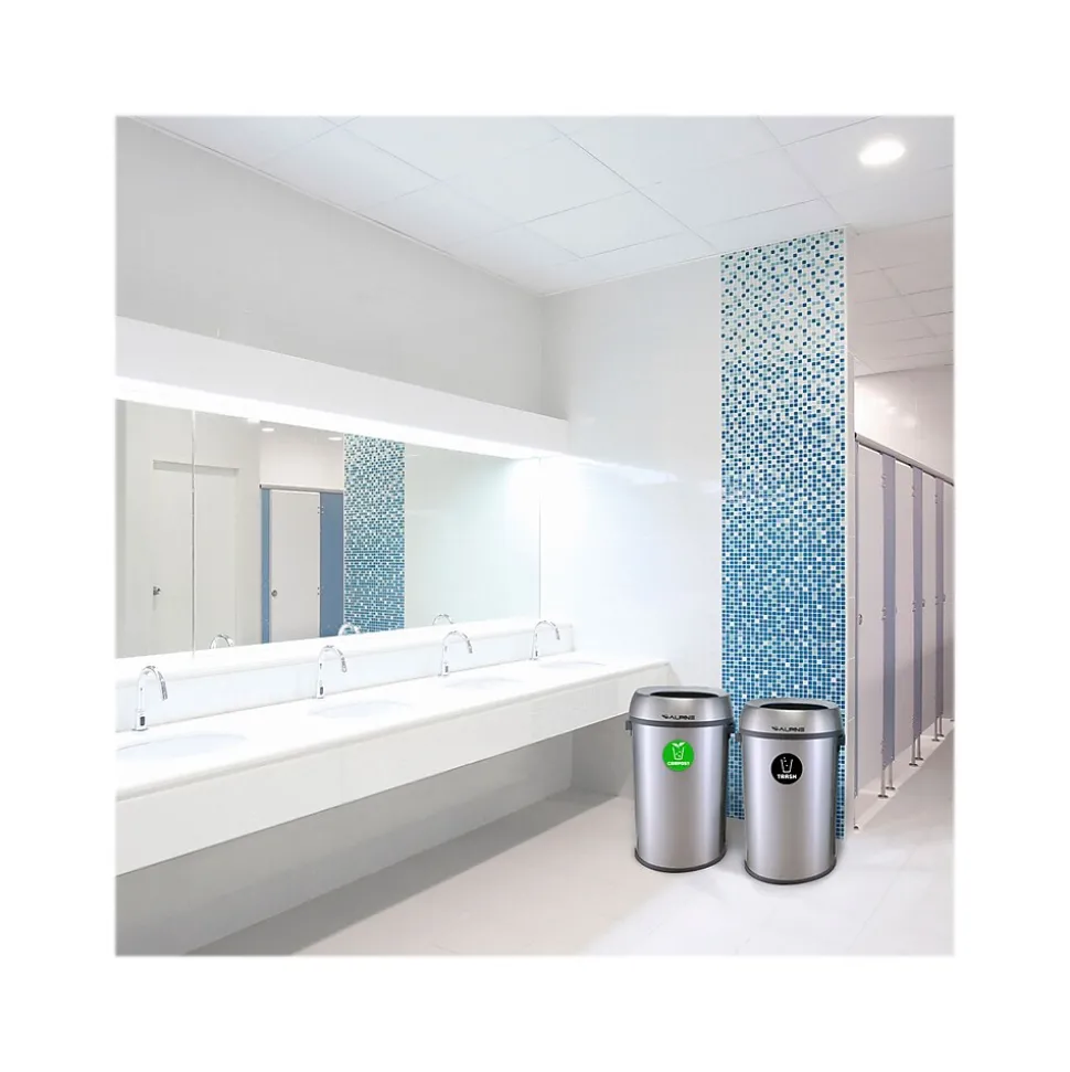 When equipping your business’s interior with waste receptacles, you want to be reassured it will survive constant daily use and add to your company’s aesthetic. With our modern, multi-stream waste management 17 Gallon Stainless Steel Indoor Compost and Trash Station with Swivel Lids, you can be confident you’re getting an everlasting product that will help maintain cleanliness in your facilities. The 17-gallon capacity is sure to accommodate a more significant amount of compost and trash, fulfilling your foot traffic demands. Included with every purchase are a durable compost and trash sticker that will identify its intended purpose. The vibrant colors of the stickers offer optimal visibility, assuring waste goes into the proper stream. In addition, the lids of the receptacle’s seamless design conceal trash bags but can easily be removed when needed. The large swivel lid will also allow precise and discrete disposal of all forms of waste while keeping unpleasant odors at bay. Our 17 Gallon Stainless Steel Indoor Compost and Trash Station with Swivel Lids will allow you to streamline waste collection in your high-traffic area while adding a touch of modern appeal.