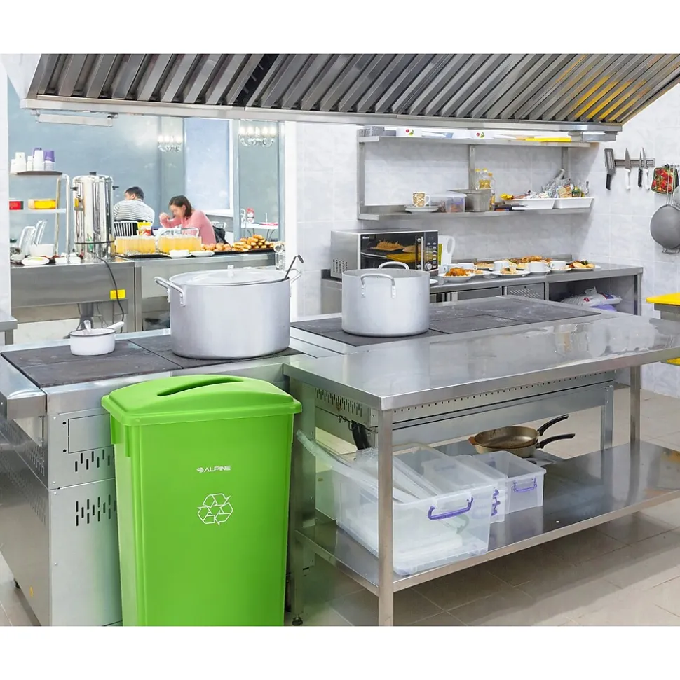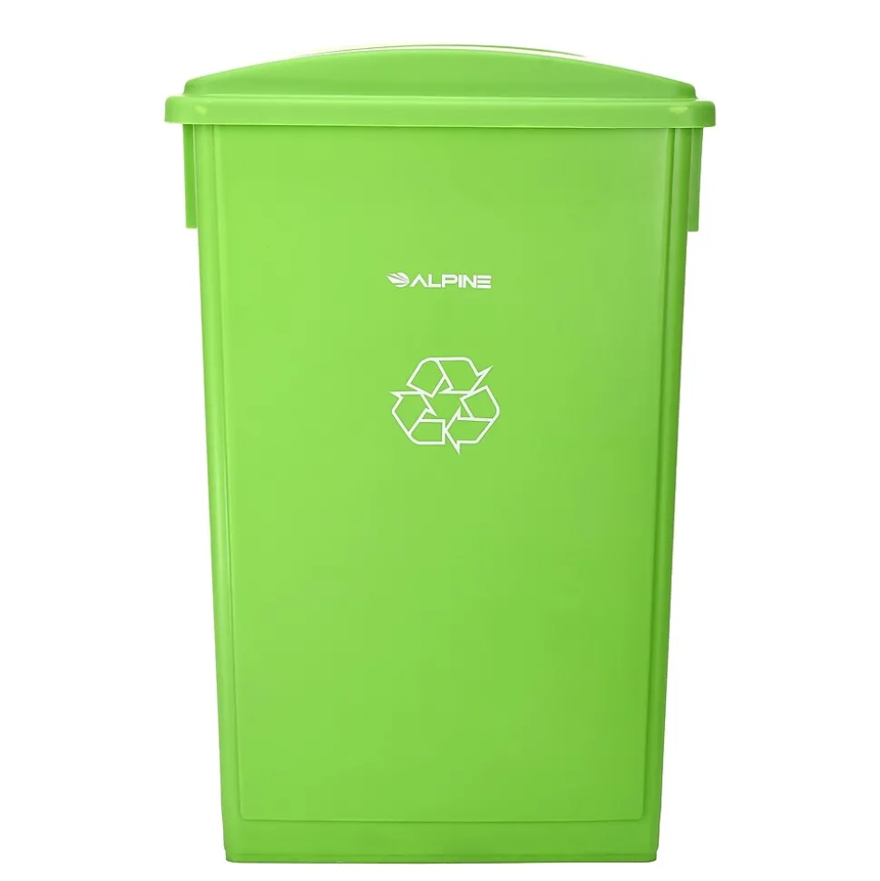 The Alpine Slim Trash Can with Paper Recycling Lid was created for high-traffic areas with limited space but can be utilized in any environment. It can be used for offices, kitchens, restaurants, cafeterias, daycare facilities, your home kitchen, or even a garage. If you are tight on space, the slim design allows you to hold a substantial amount of waste while not compromising valuable space. Each receptacle comes with a paper recycling lid indicating to anyone what type of waste goes into each receptacle. The paper recycling lid helps keep unsightly trash hidden while helping reduce your carbon footprint. It is easy to clean and maintain, as well as withstanding daily wear and tear. Our receptacles are a vibrant lime green hue which makes them easily visible, ensuring everyone is alerted to where to discard their waste. An added benefit is with the help of our Alpine Dolly; you connect several of the Slim Trash Cans, making waste removal quick and easy while reducing worker strain. Our Slim Trash Can with Paper Recycling Lid is a product you can are guaranteed to have for many years.