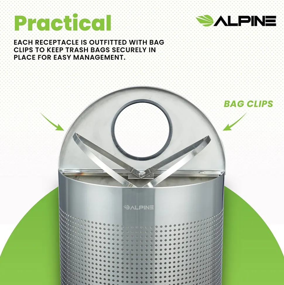 - Each receptacle is equipped with secure bag clips, ensuring trash bags stay firmly in place for effortless waste management