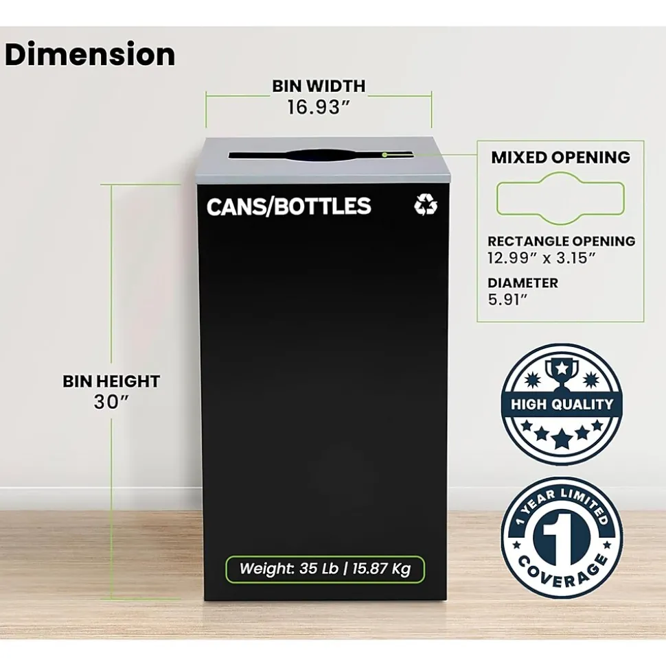 - Stickers included: Cans/Bottles, Compost, Mixed, Recycling, Trash