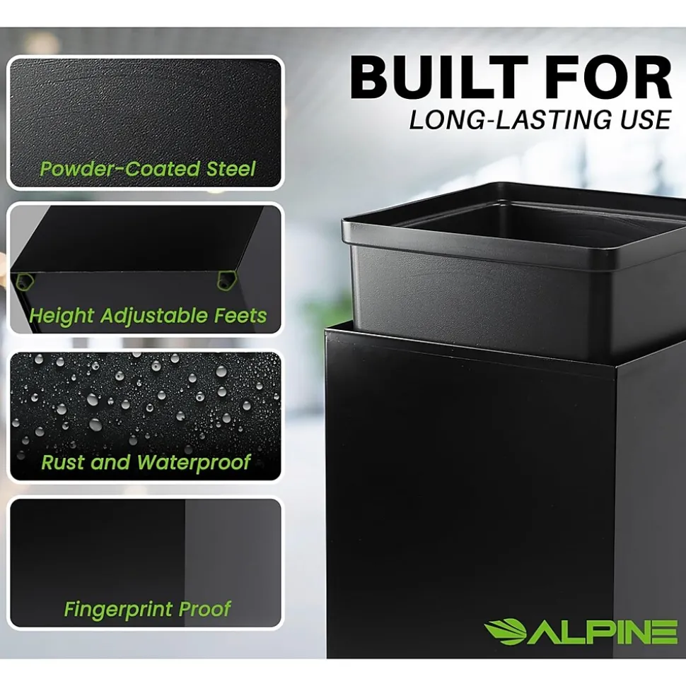 Are you in the market for an efficient and eco-friendly solution to managing waste? Then look no further than the Alpine square trash bin. With a generous 29 gal. capacity, this bin is perfect for use in any environment, from homes to offices, schools, and more. It can handle high-volume foot traffic and requires less emptying from your maintenance staff. It has been crafted of a durable powder-coated steel to ensure it’s built to last, even with heavy use. Its included removable plastic liner will prevent leaks from seeping out and is a cinch to clean when needed.