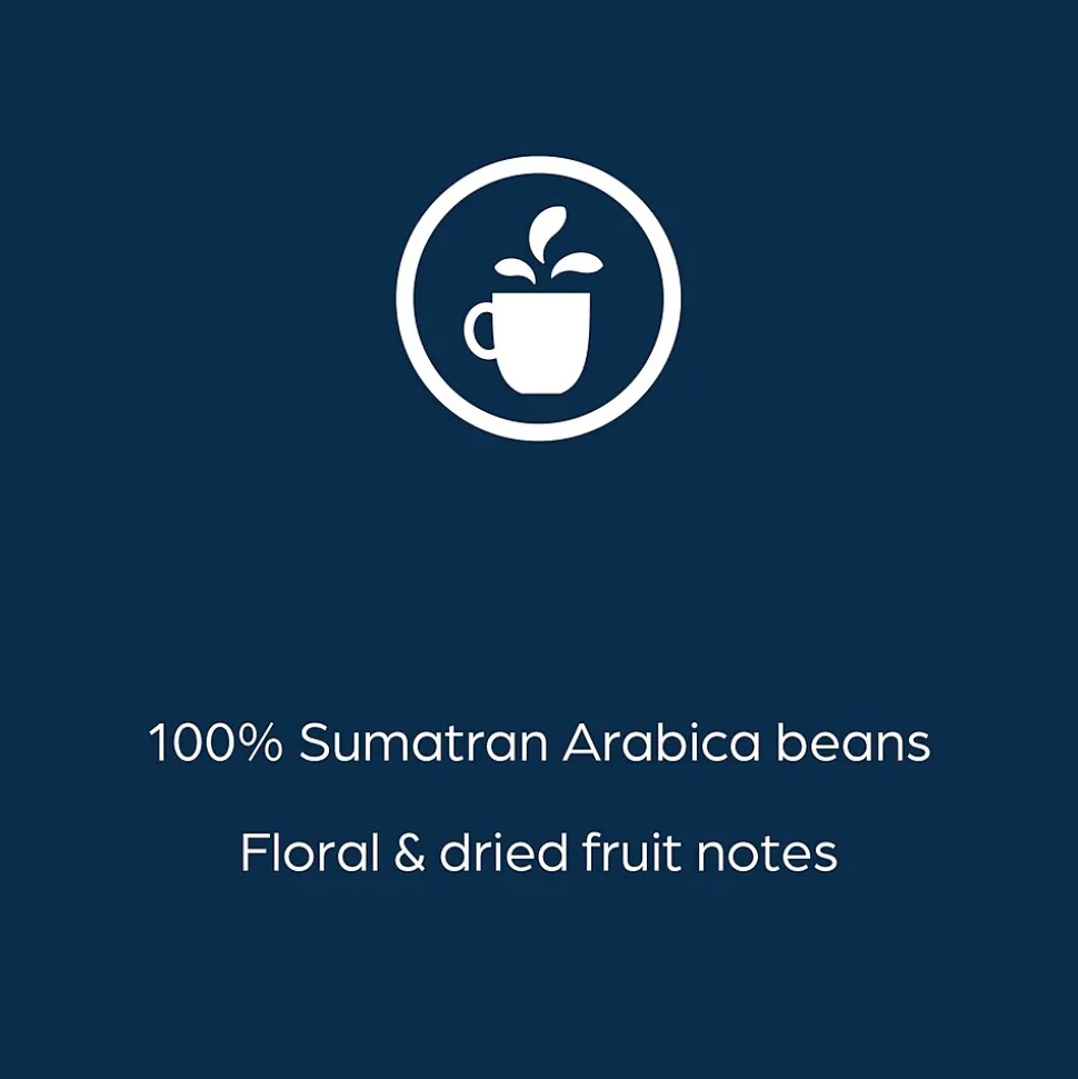 - Dark roast coffee with Sumatra flavor