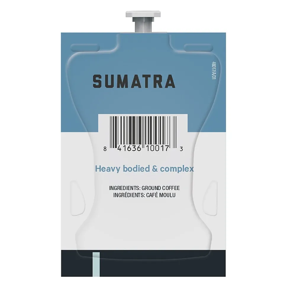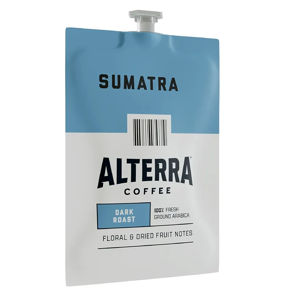 Prepare a flavorful brew by pairing these fresh packs with select Flavia machines. Made from 100 percent Sumatra Arabica beans, these packs produce a dark roast that has an intense, complex taste and striking finish. These Alterra Flavia Sumatra coffee fresh packs come with 100 to a carton, so restocking the break room, waiting area or coffee bar is convenient.