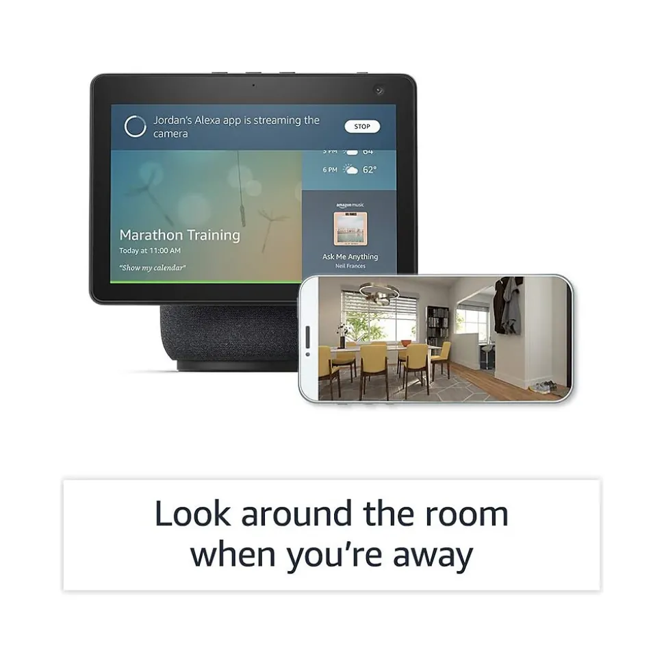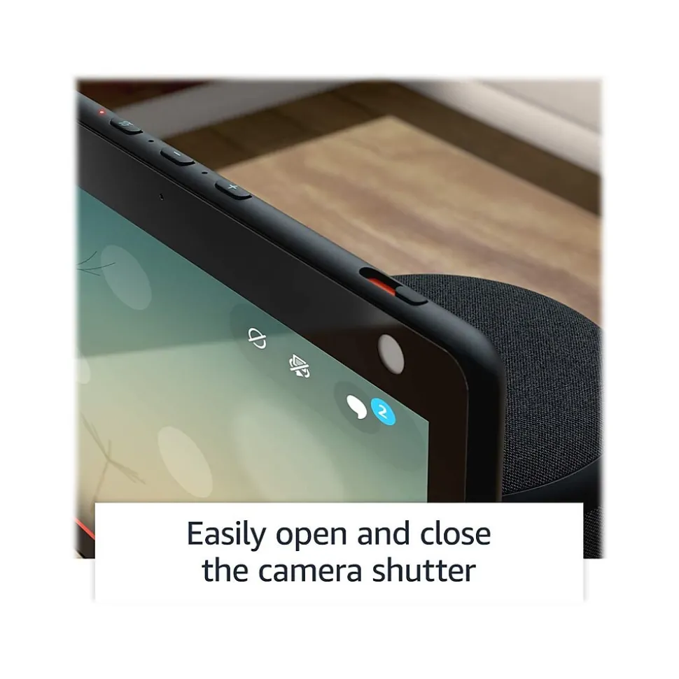 Meet the Amazon Echo Show 10 (3rd Gen) HD smart display with motion and Alexa. Move around the room during video calls or while you’re cooking along to a recipe, and the brilliant 10.1″ HD screen will automatically turn to face you. You can stay focused on who you’re talking to or what you’re watching. Alexa can control thousands of compatible smart home devices such as security cameras, lights, thermostats, and more. The speakers deliver premium, directional sound that adapts to the space you’re in. The HD screen brings your shows to life from Prime Video, Netflix, Hulu, and other favorites. It’s also perfect for catching up on the latest news and sports highlights. The Echo Show 10 (3rd Gen) is built with multiple layers of privacy controls, including a microphone/camera off button and a built-in shutter to cover the camera. Easily turn on/off motion at any time by voice, on device, or in the Alexa app.
