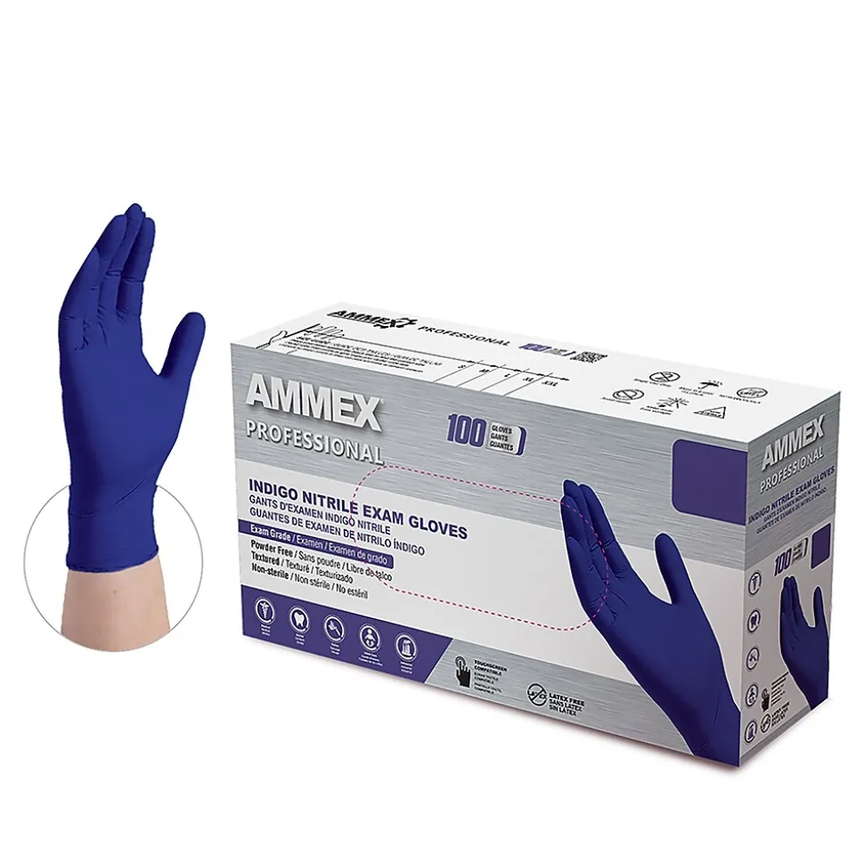 AMMEX Professional Indigo Exam Nitrile Gloves meet all safety and comfort standards. These durable, powder-free, latex-free, 3-mil gloves are popular across the healthcare spectrum from medical to dental, veterinarian to tattooing, child care to food service. AMMEX Professional Indigo exam nitrile gloves have you covered. High tactile sensitivity with strong barrier protection.