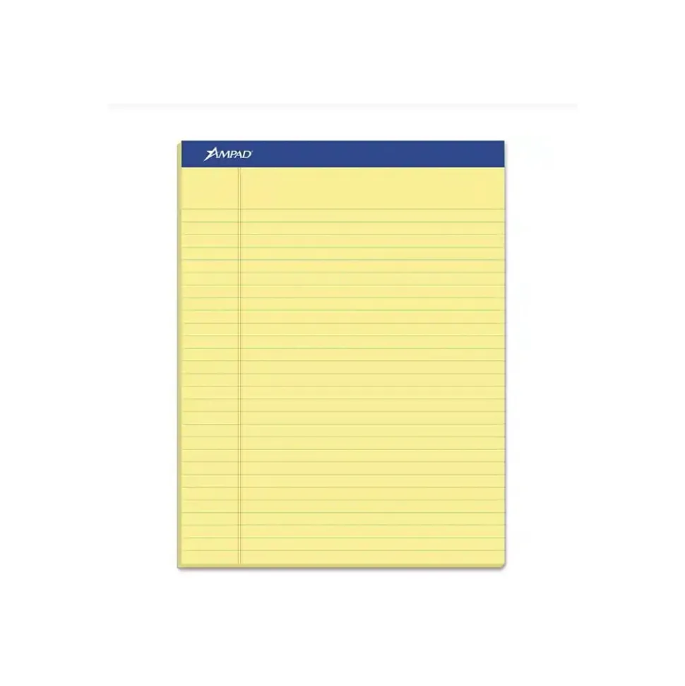 Show your concern for the environment when you purchase this Ampad notepad containing 50 percent post-consumer content and 100 percent recycled materials. The wide-ruled sheets offer ample space for large handwriting, while the canary yellow paper color contrasts pencil and pen markings to make your writing pop. Take this versatile notepad outside or to the coffee shop for doodling or journaling, thanks to the sturdy backing, which provides a stable writing surface anywhere you go.
