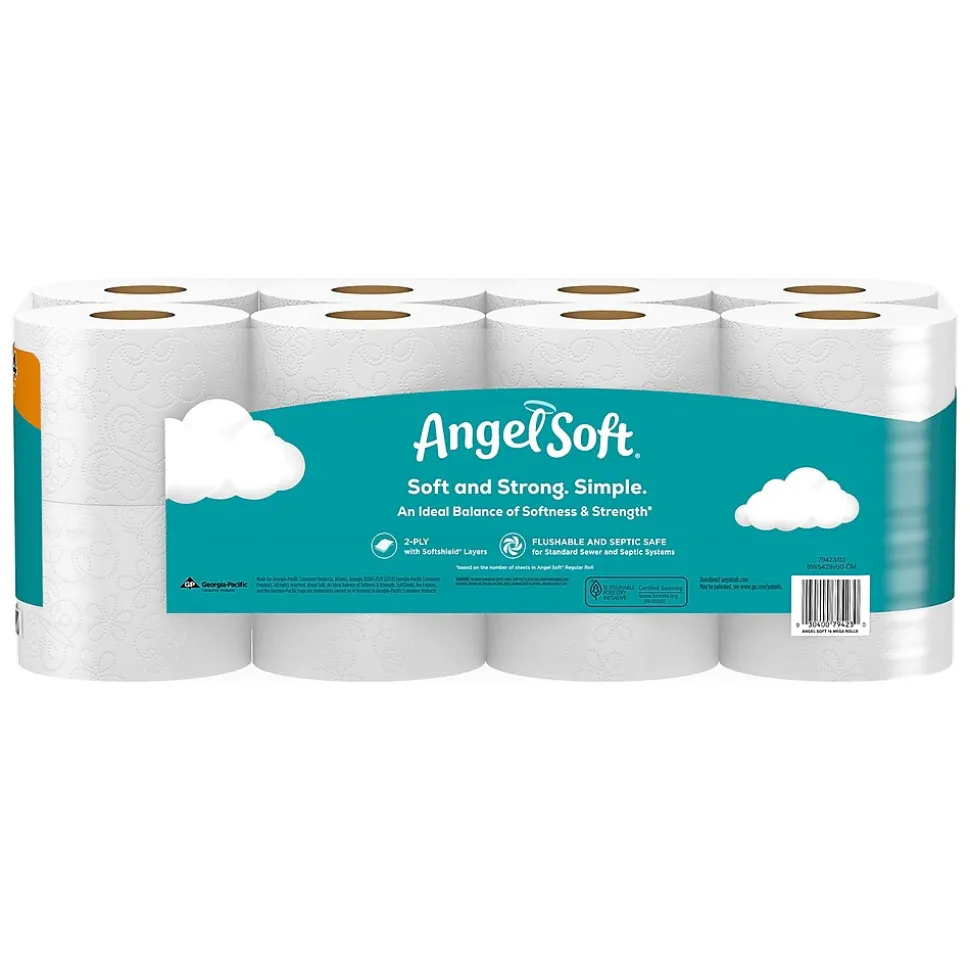 Angel Soft’s Mega roll toilet paper delivers even more of the softness and strength your family relies on with 20% thicker sheets, and always at a price that fits your budget. Each Mega roll contains 320 2-ply sheets, fits standard bathroom toilet paper holders, and is flushable and septic safe in standard sewer and septic systems.