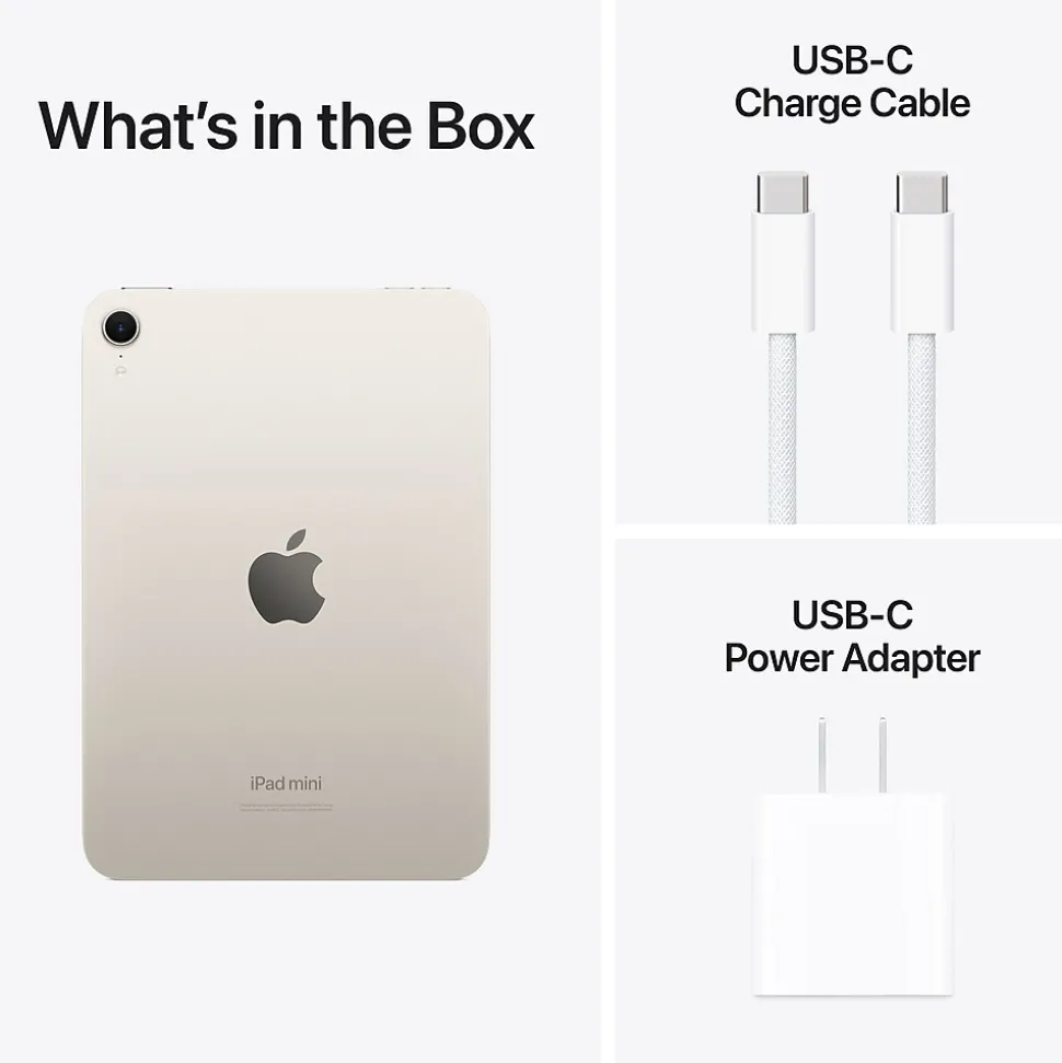 - What’s in the Box: iPad mini, USB-C Charge Cable, 20W USB-C Power Adapter