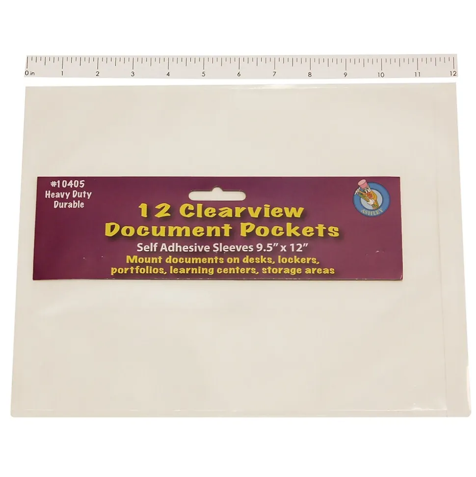 These pockets seal at end and remove easily from desk. Self-adhesive and heavy duty. Open pocket, slip in document, remove backing, position pocket and stick! Great for documents, artwork, large photos, and signs. Pocket fits 9″ x 12″ document. Each pocket measures 9″ tall by 12″ wide. Each pack includes 12 pockets. Sold as 3 packs for a total of 36 pockets.
