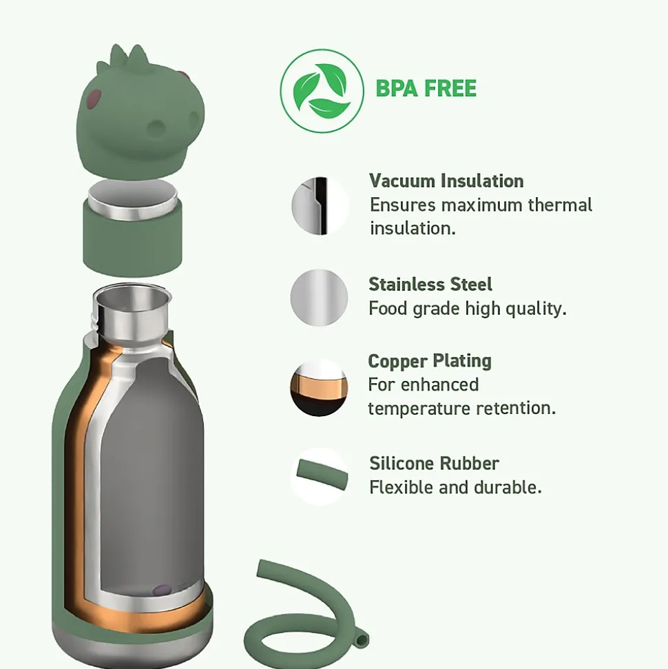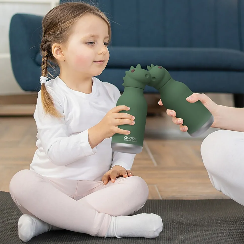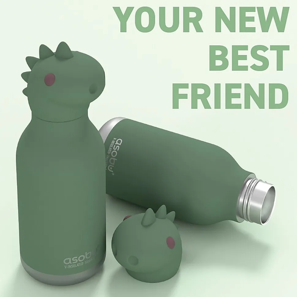On the hunt for a fun and functional water bottle for your little one? The ASOBU Dinosaur Bestie Bottle is an adorable stainless steel kids water bottle with a soft head on the lid! This 16-oz. bottle is easy for those little hands to hold and is 100% spillproof, making it ideal for adventures! With the included flexible reusable straw drinking will be fun and games!