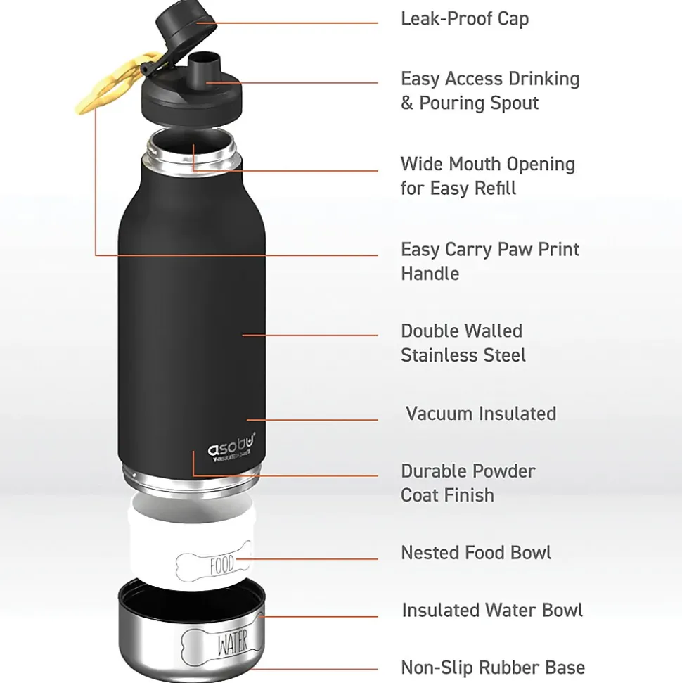 ASOBU’s Black Buddy Bottle makes it easy to share with your pup! A stainless steel, insulated bottle keeps water cold for hours, and 2 detachable bowls make it easy to share water — and a snack — with your buddy! The leak-proof cap ensures your water won’t spill, no matter where your adventures take you, and the easy-to-carry pawprint handle makes it the ideal bottle for your next hike. The Buddy Bottle makes the ideal gift for the dog parent in your life!