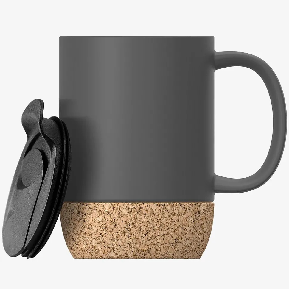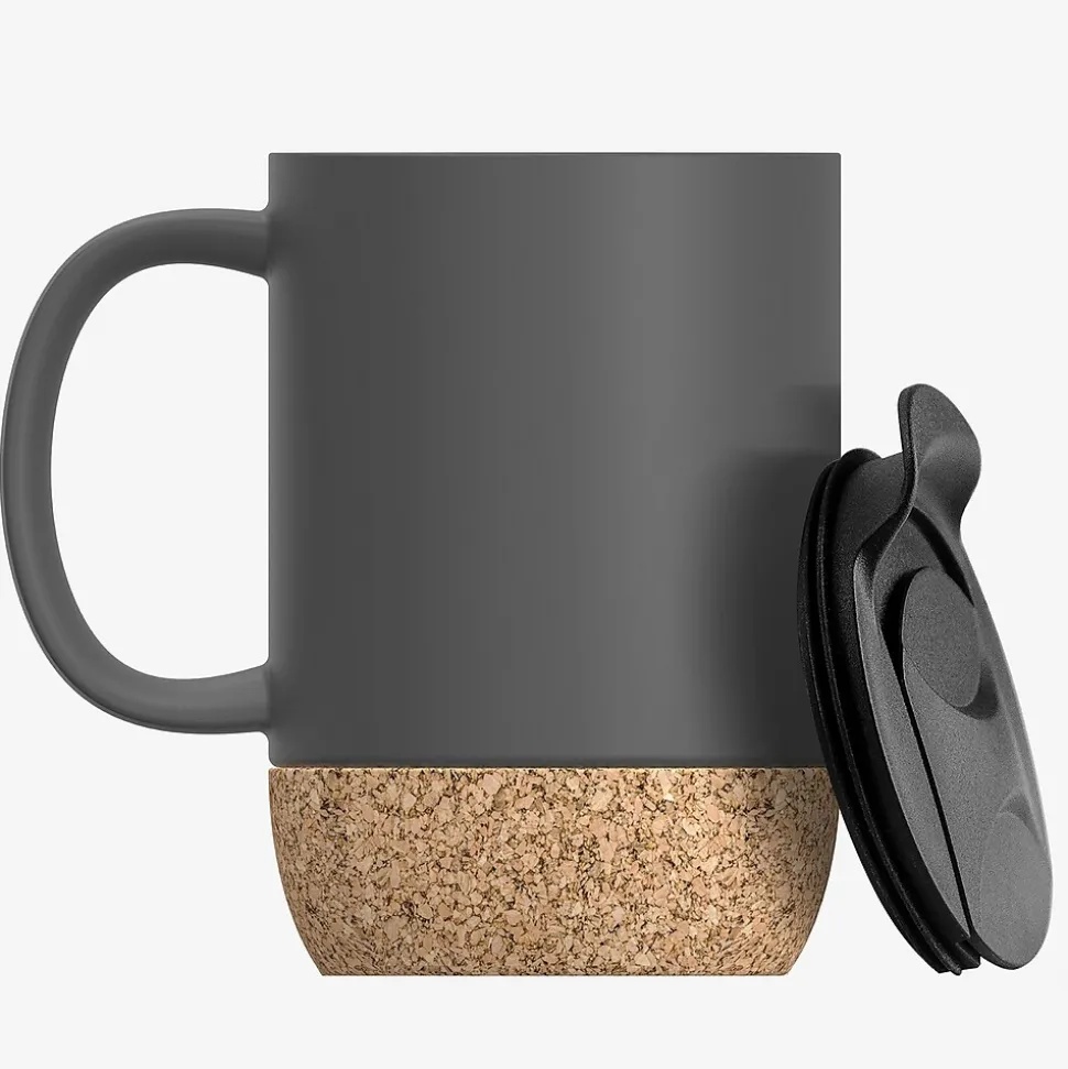 The Gray Ceramic and Cork Mug from Asobu is a nice 12-oz. mug that looks good on any table or office desk. The cork bottom acts as a coaster to prevent scratching. The lid is splashproof and has a silicone seal. A matte finish completes this minimalistic mug.