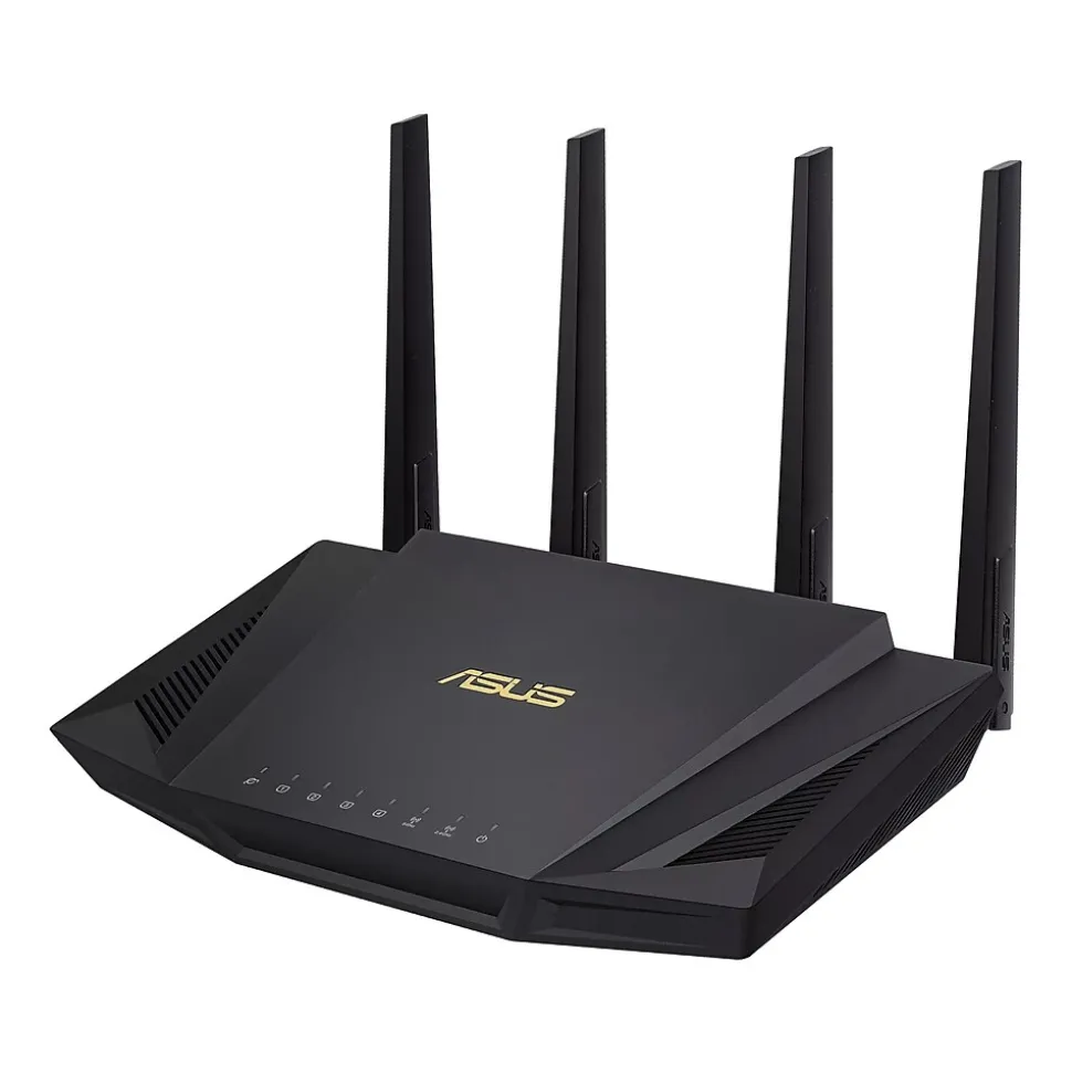 The Asus RT-AX3000 is a 2 x 2 dual-band Wi-Fi router that provides a 160MHz bandwidth and 1024-QAM for dramatically faster wireless connections. With a total networking speed of about 3000Mbps (574Mbps on the 2.4GHz band and 2402Mbps on the 5GHz band), RT-AX3000 is 2.5 times faster than 802.11ac 2 x 2 dual-band routers.
