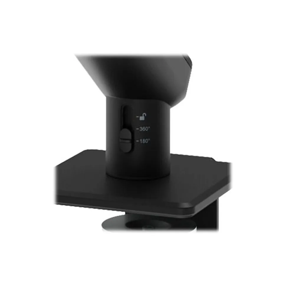 - Integrated toolless 180-degree arm rotation limiter to prevent interference with walls and workstation dividers
