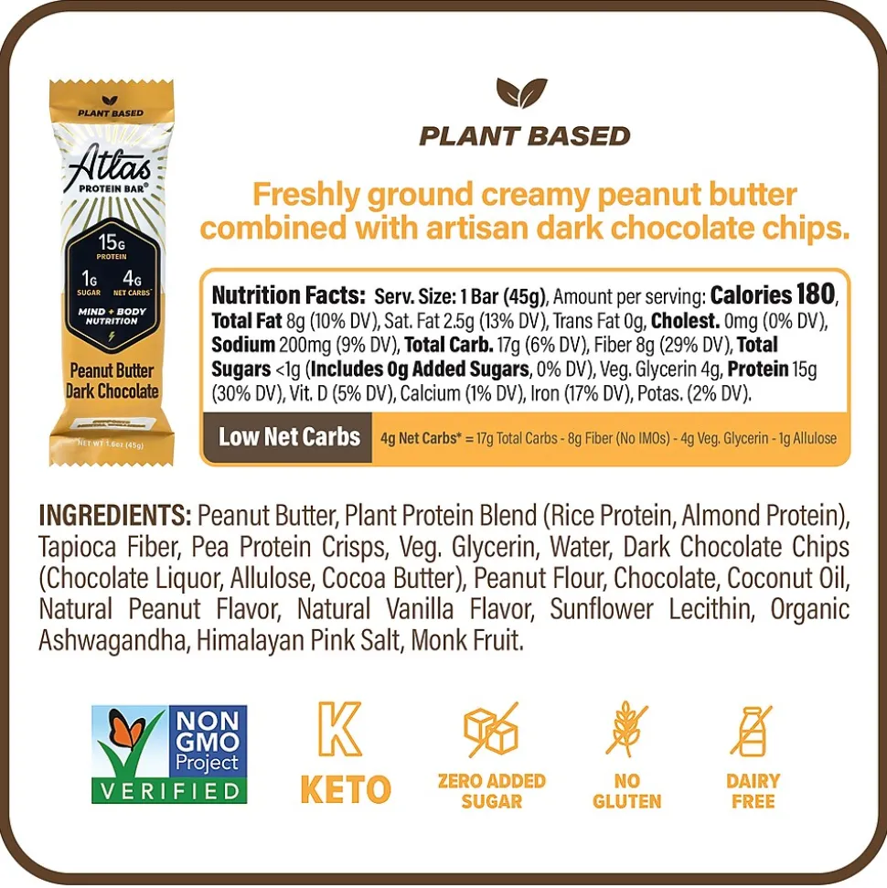 - Flavors include: Peanut Butter Dark Chocolate and Dark Chocolate Sea Salt Plant Based