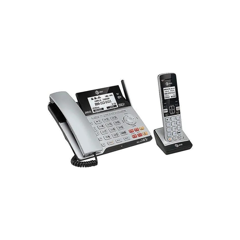 Stay connected even while you’re away from your landline and mobile device with this two-line phone system. Connect to Cell Bluetooth technology lets you make and receive calls on your smartphone number and be alerted of text messages, emails, and social media notifications. This AT&T Connect to Cell two-line answering system includes of corded handset for a stable line connection and a cordless unit for mobility.