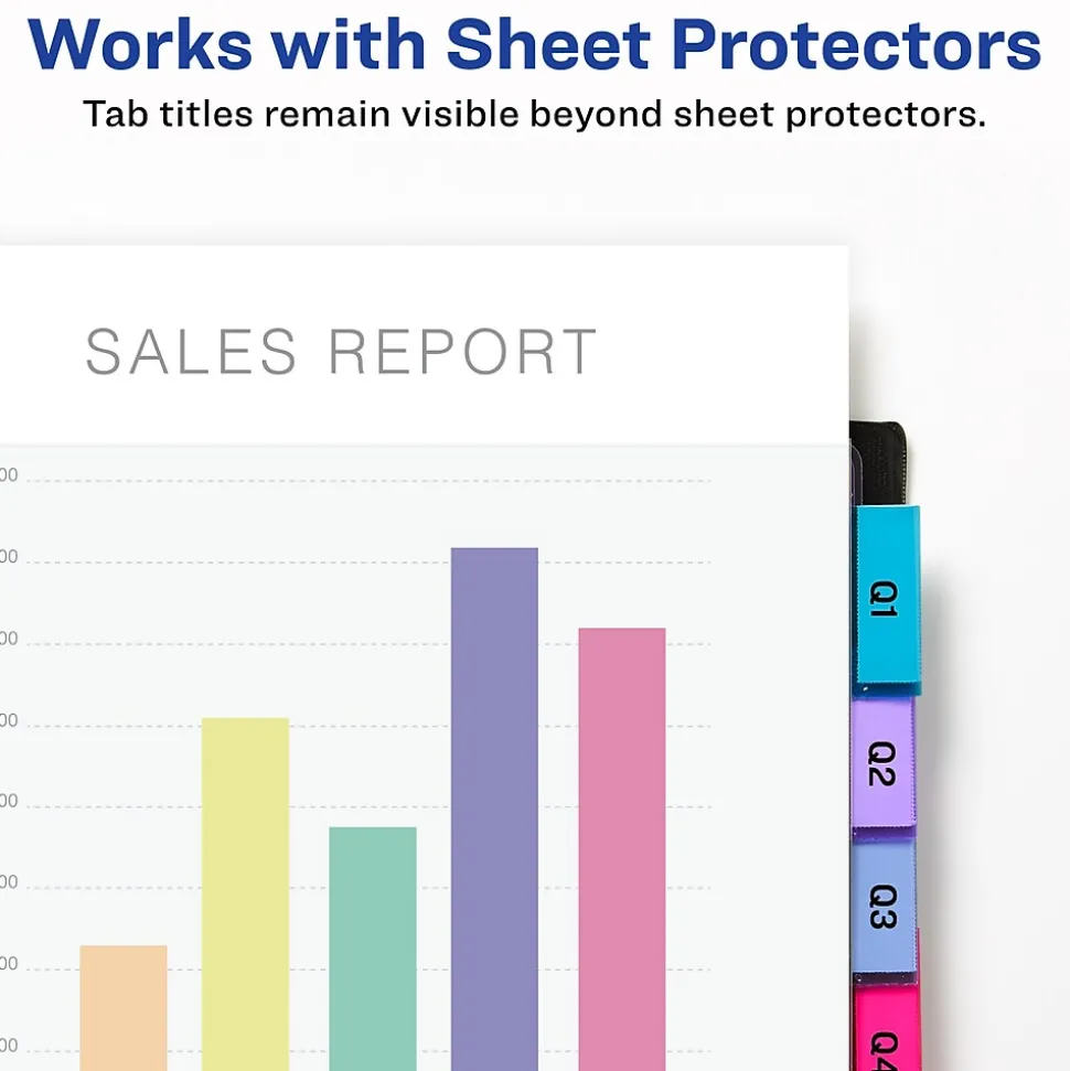 - Tab titles remain visible with tabs that extend beyond sheet protectors