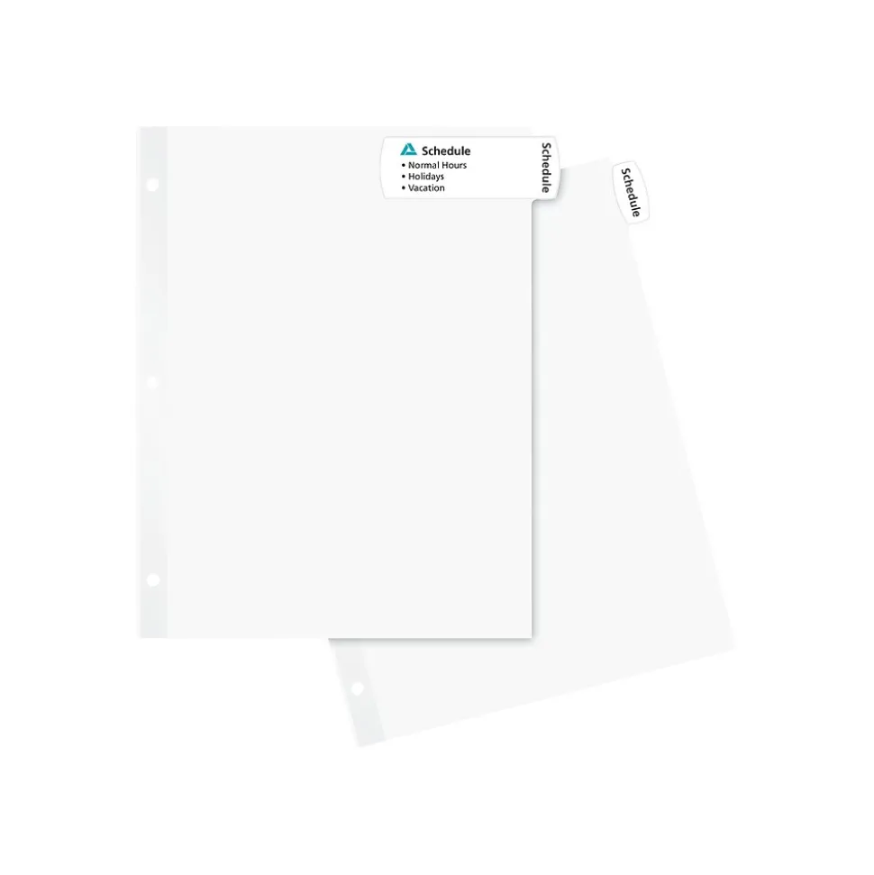 Organize scrapbooks, work notes, and binders with these label dividers. The Easy Peel feature requires no inserts and offers fast tab labeling, making it quick and easy to apply, while the three-hole punched design allows for convenient integration with binding systems. These Avery Big Tab Easy Peel eight-tab printable label dividers have reinforced holes, providing extra durability.