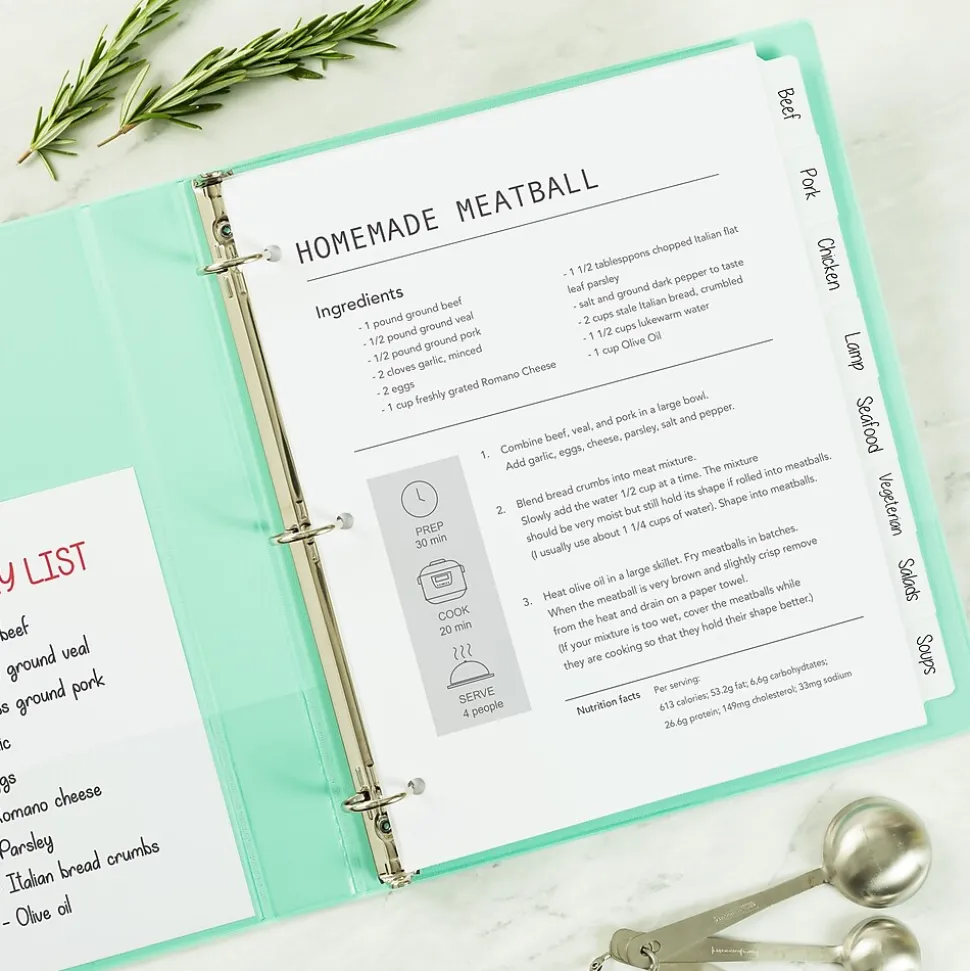 - Designed to use with letter-size binders