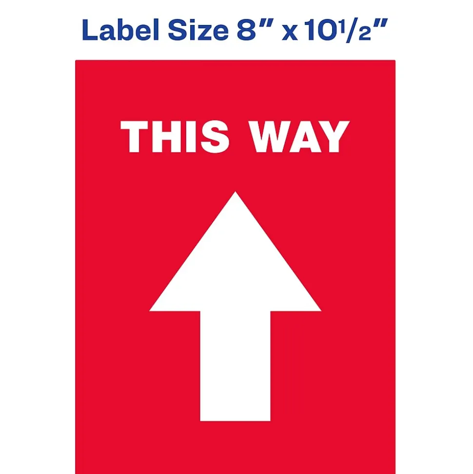 Keep people at a safe distance with Avery “This Way” social distancing floor decals. Preprinted with an eye-catching white arrow on a red background with a semi-glossy finish, these 8″ x 10.5″ “This Way” floor decals immediately stand out and help direct foot traffic. Built to withstand the constant wear and tear of everyday foot traffic, these anti-slip vinyl floor decals are scuff resistant, water resistant and UV-coated for additional durability. Removable floor decals stick and stay to multiple indoor surfaces but also peel away cleanly. The removable adhesive also makes it easy to reposition the floor decals so that you can carefully adjust the placement of the vinyl floor decals to make sure that the spacing is just right. Preprinted social distancing floor decals are perfect for every type of location or business including retail stores, restaurants, hair salons, banks, airports and more. Includes 5 preprinted removable vinyl decals.